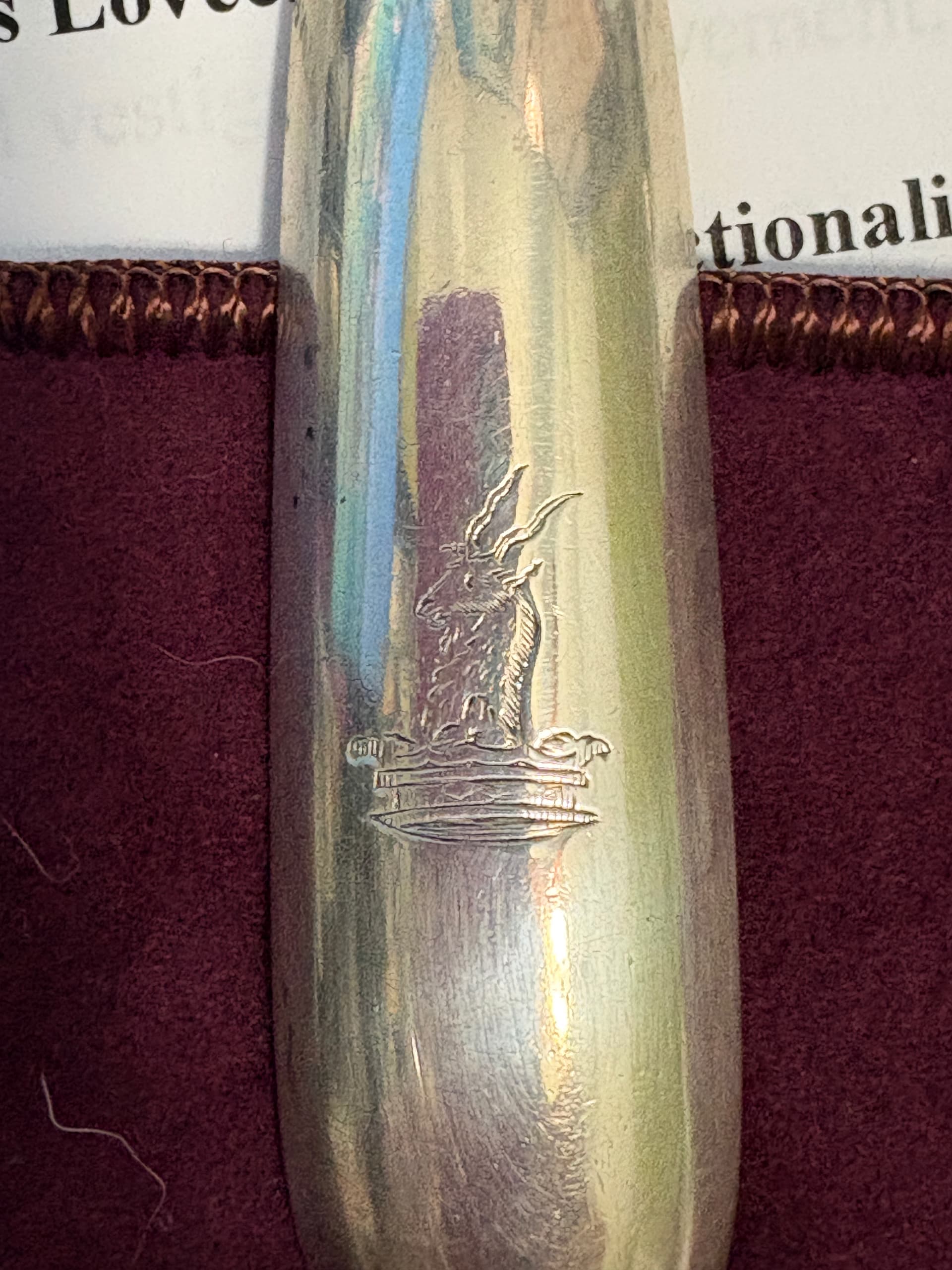 According to the lyrics of “Home of the Range” the deer and the antelope used to play in North America. This isn’t that animal. This is what 18th century silversmiths used to think the African antelope looked like with the twirled horn. Maybe the Kudu did.