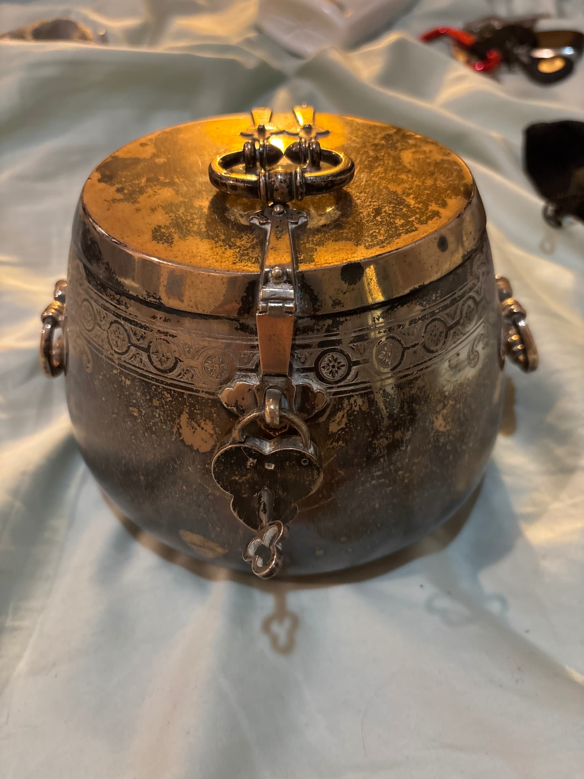 It’s unique because it has a lock and key which are also both stamped with engravings and this has never been restored. I know it’s from 1862 to 1888 but not exactly sure specifically.
