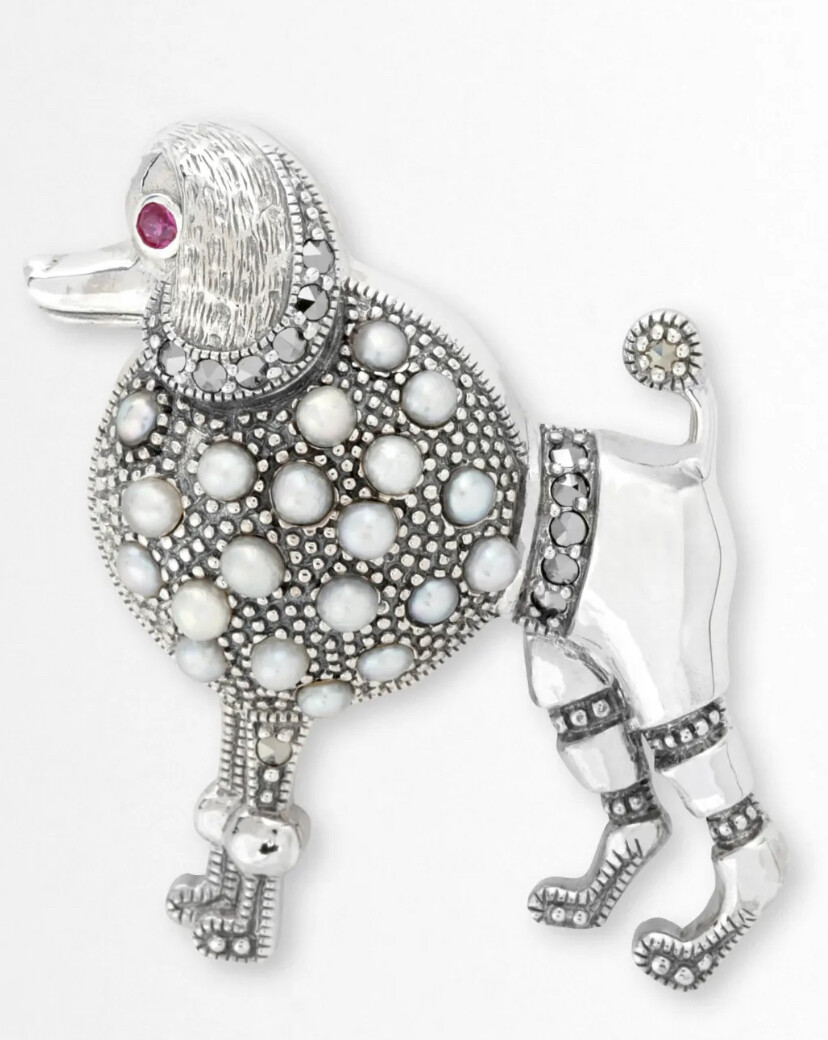 Hello !! I’m new here and looking for help identifying the maker of this beautiful Silver Marcasite Poodle Brooch. I’ve looked through a few data bases to no avail. Thank you in advance !!