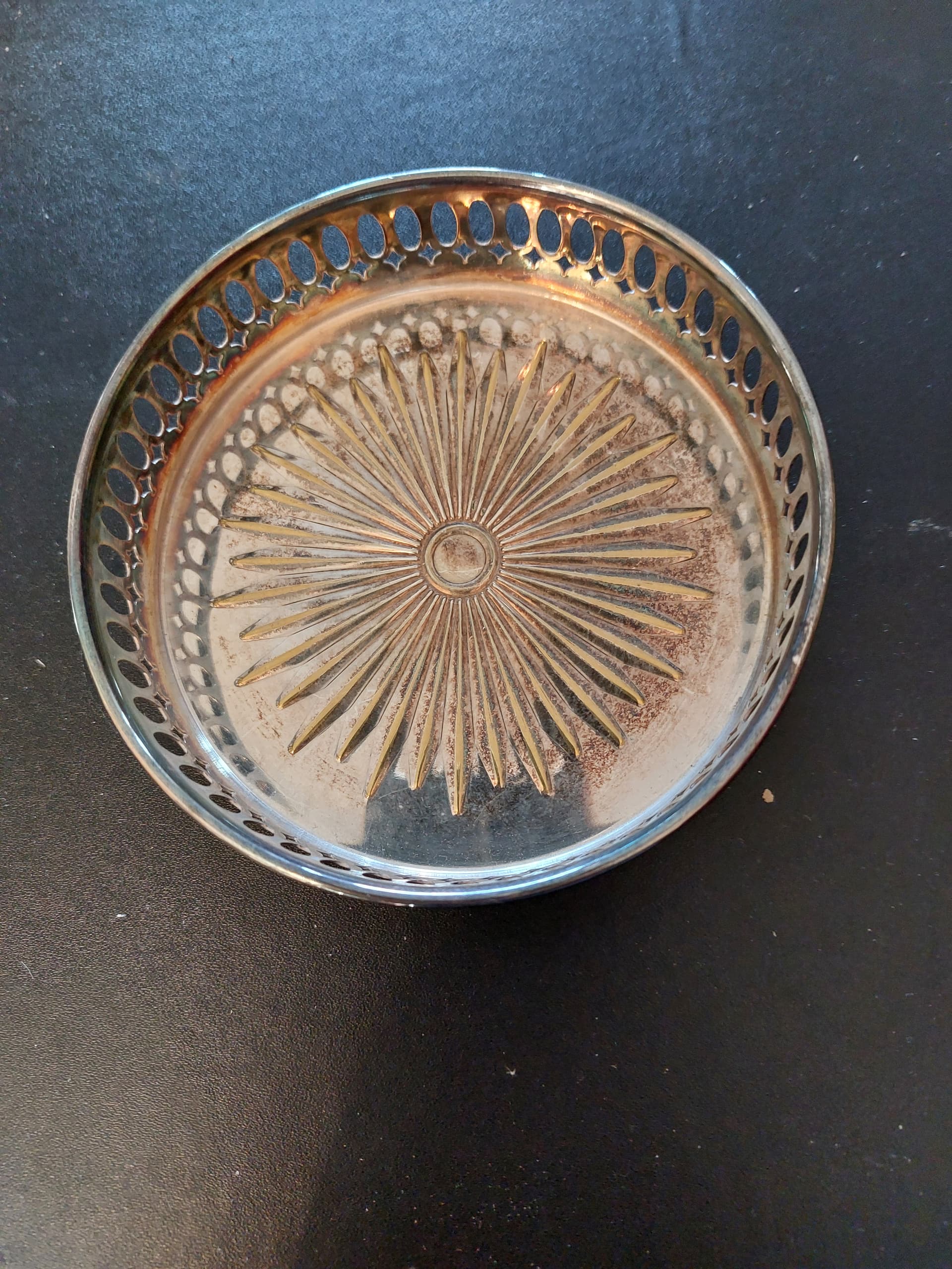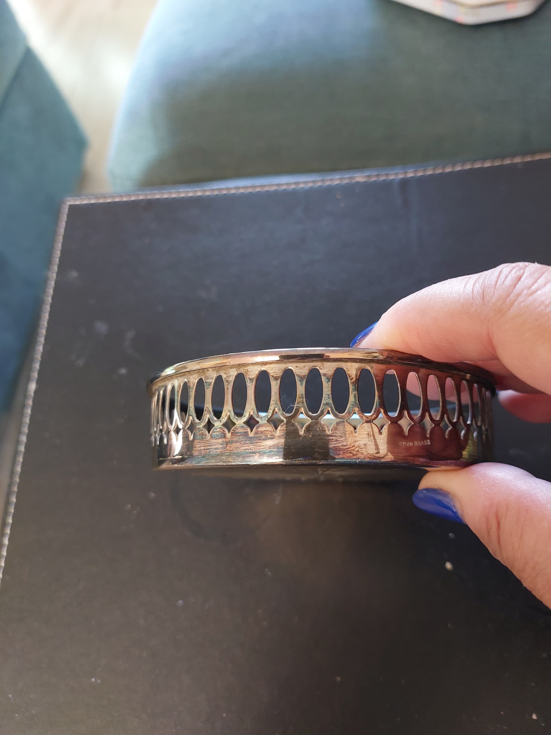 A bottle coaster is what it is, electro plate on brass. Anything under 100 years old is more or less classed as Vintage. Still useful ![]()