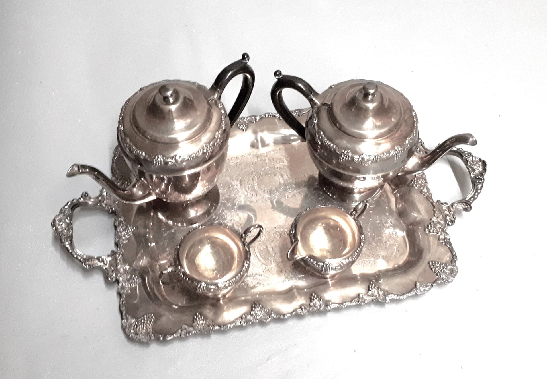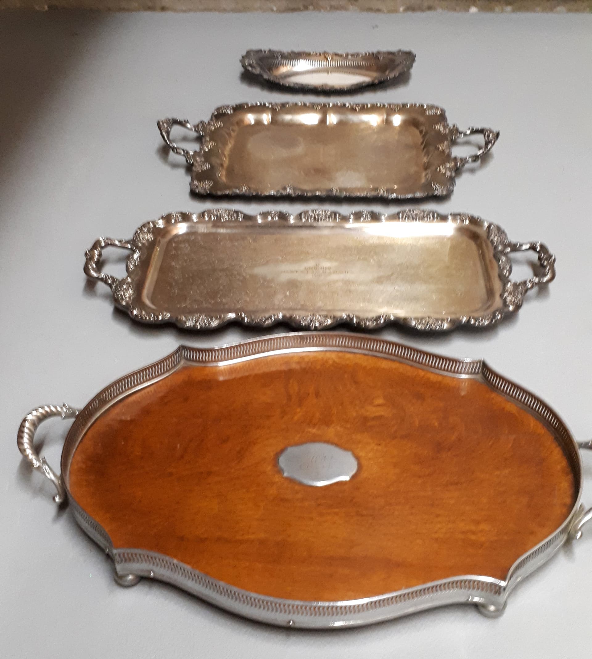 Silver plate Trays 3 silver plate 1 silver plate and wood