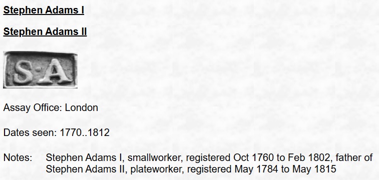 “That’s a lion passant which indicates it’s sterling silver (UK). Yes, there’s usually other hallmarks, including a town assay mark and a year made mark, but sometimes the makers didn’t get them assayed to avoid paying duty on them (or they may have been in their own collection). These look like they were made by Stephen Adams I who was a silversmith in London from 1770 to 1812 (it looks like his makers mark). Given the spoons are stamped on the stem, I’m guessing they may have been closer to 1770 - hallmarks tended to go closer to the handle later on, but it may have been a client request to put them lower down as well. Either way, you could test them to be sure, but I’d bet they are silver.”