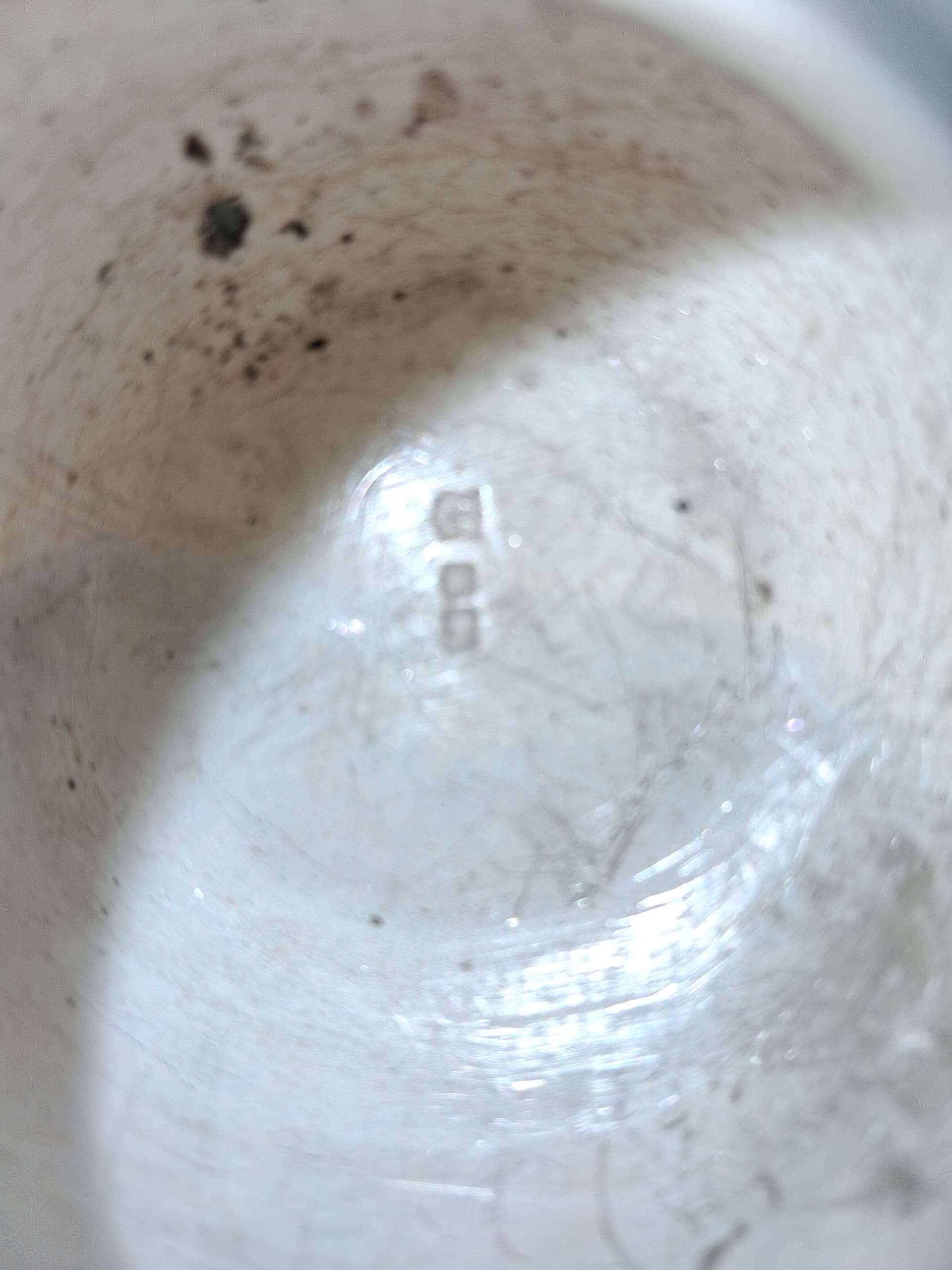 The mark on the burner is that Thomas Bradbury (not Bradford) & Sons and with a partial Sheffield hallmark (lacking a date letter). The form of the crown and lion passant marks tell me that it dates from 1918 or later. The fact that it is only a partial hallmark means that the burner was part of an ensemble where there would have been a partial hallmark with a date letter on another component.