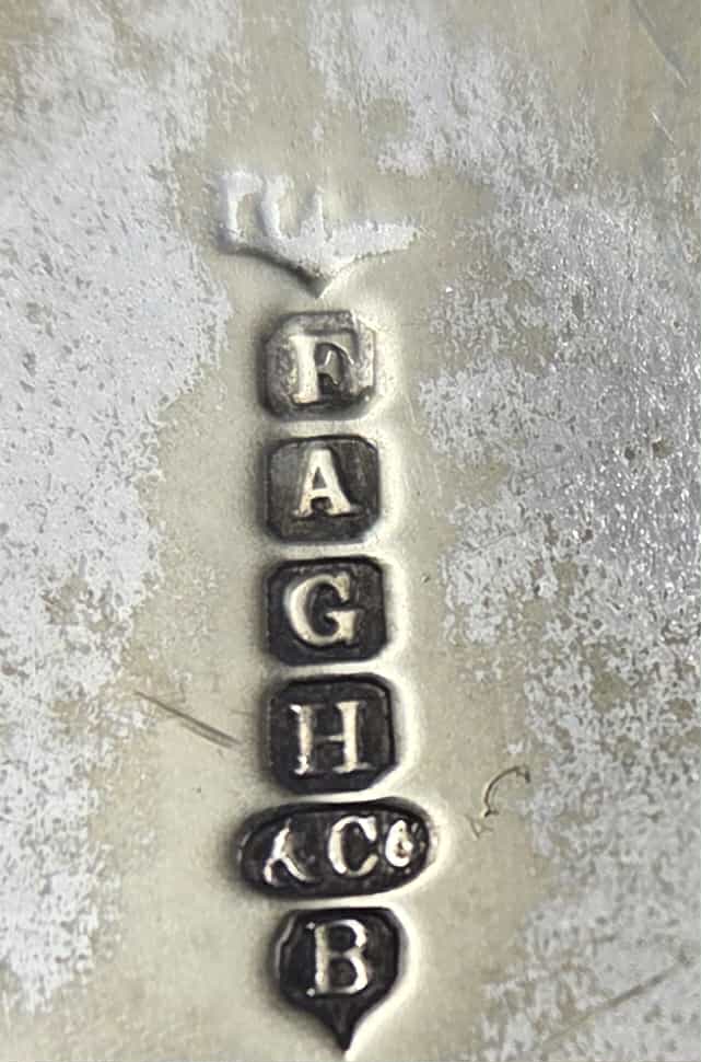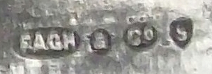 Frederick Charles Asman (1865-1933) and Arthur Asman (1867-1944), active at 20 Cambridge St. (1905-1933) and at 34 Eyre St., Sheffield (1934-1940). Listed Exhibitor to 1922 British Industries Fair. The marks FAGH & Co have characteristics similar to the FA&Co of Asman but is unknown the meaning of the added “GH” initials (possibly a successsor). The firm used the trade mark NORBRIA SILVER (possibly).