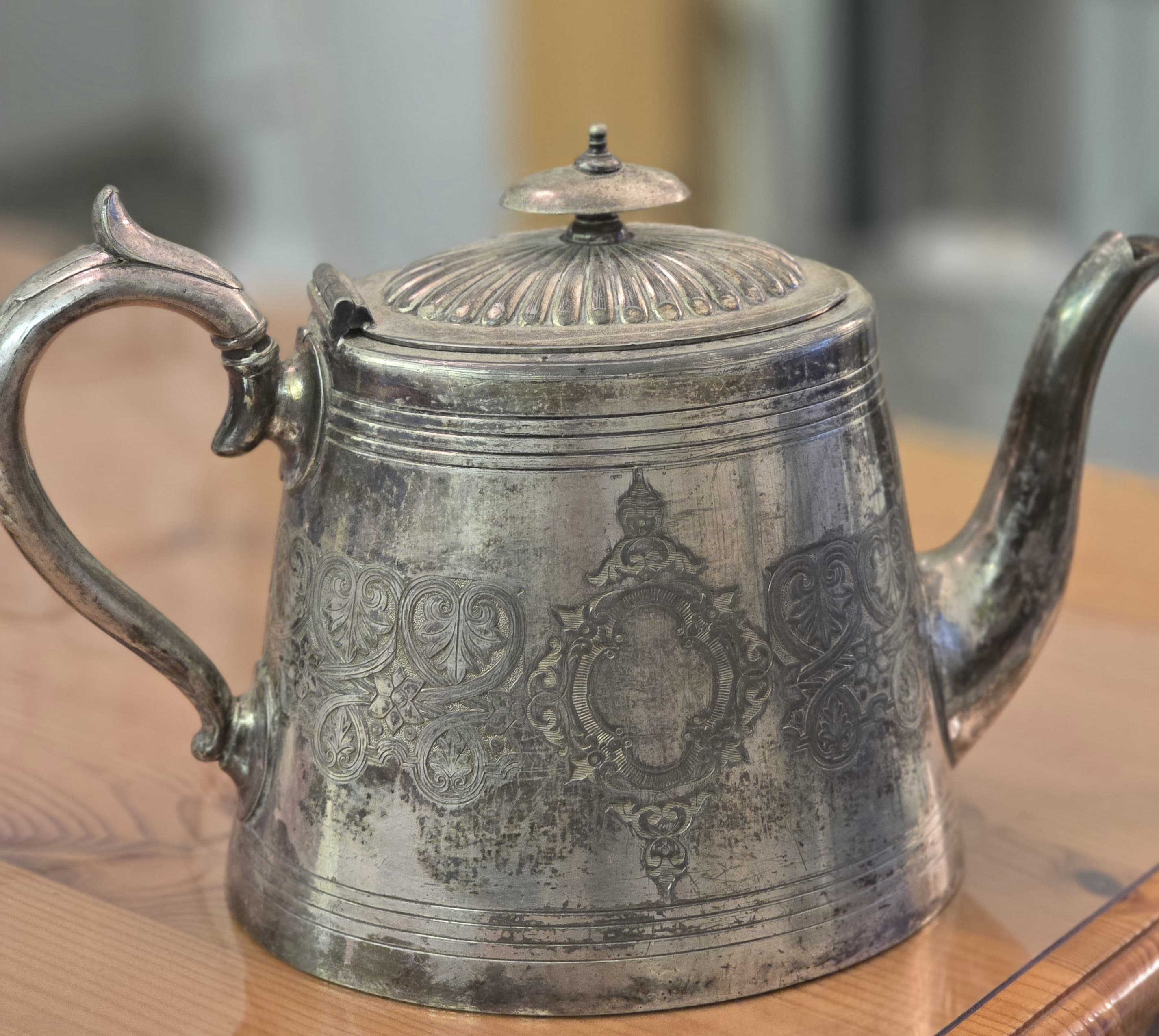Could anyone please identify and value this silver teapot. It weighs 717 gramms and stands 15cm from the base to the top of the lid. It has a very old sugar cube inside, believed to be 70 years old or more! There are no dents or scratches. Thanks