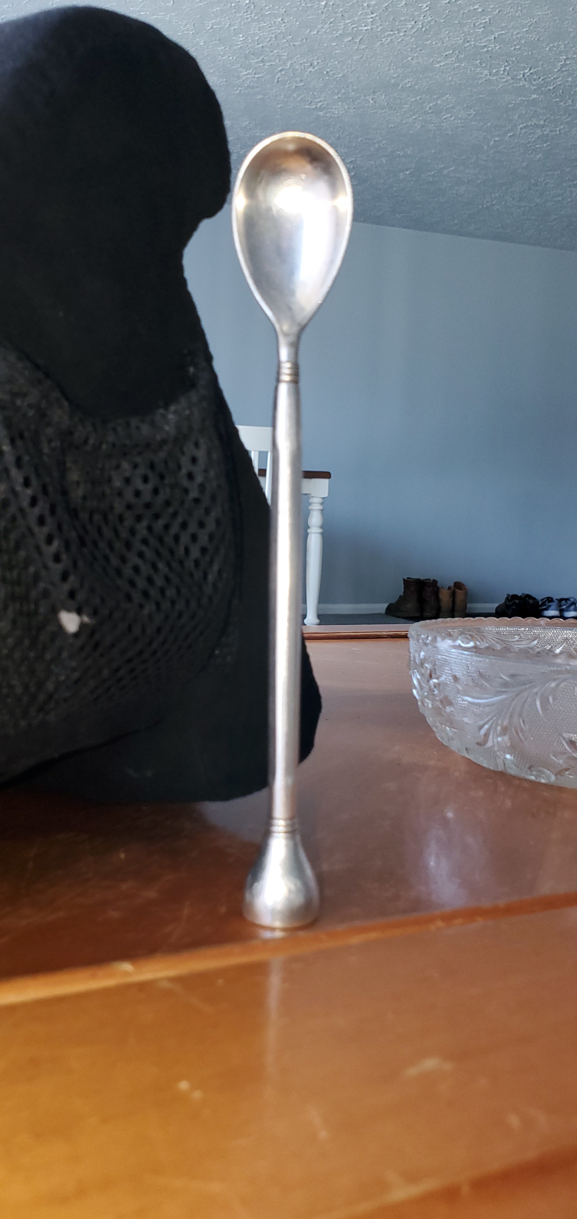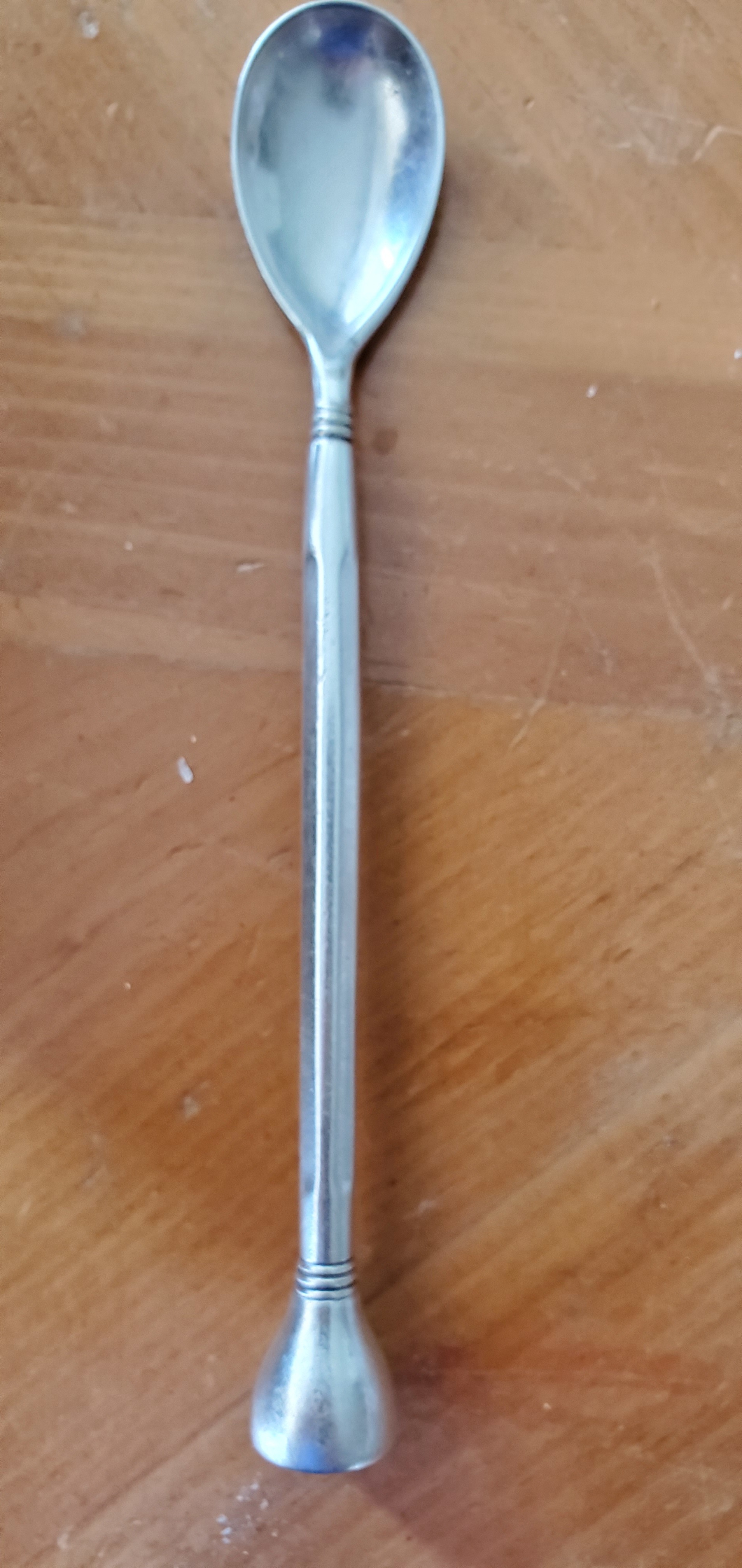 It might be a mint julep spoon. Are there other markings? I don’t know if Tiffany did silver-plated items, or what. If it doesn’t have anything saying sterling, it’s unlikely to be solid silver.