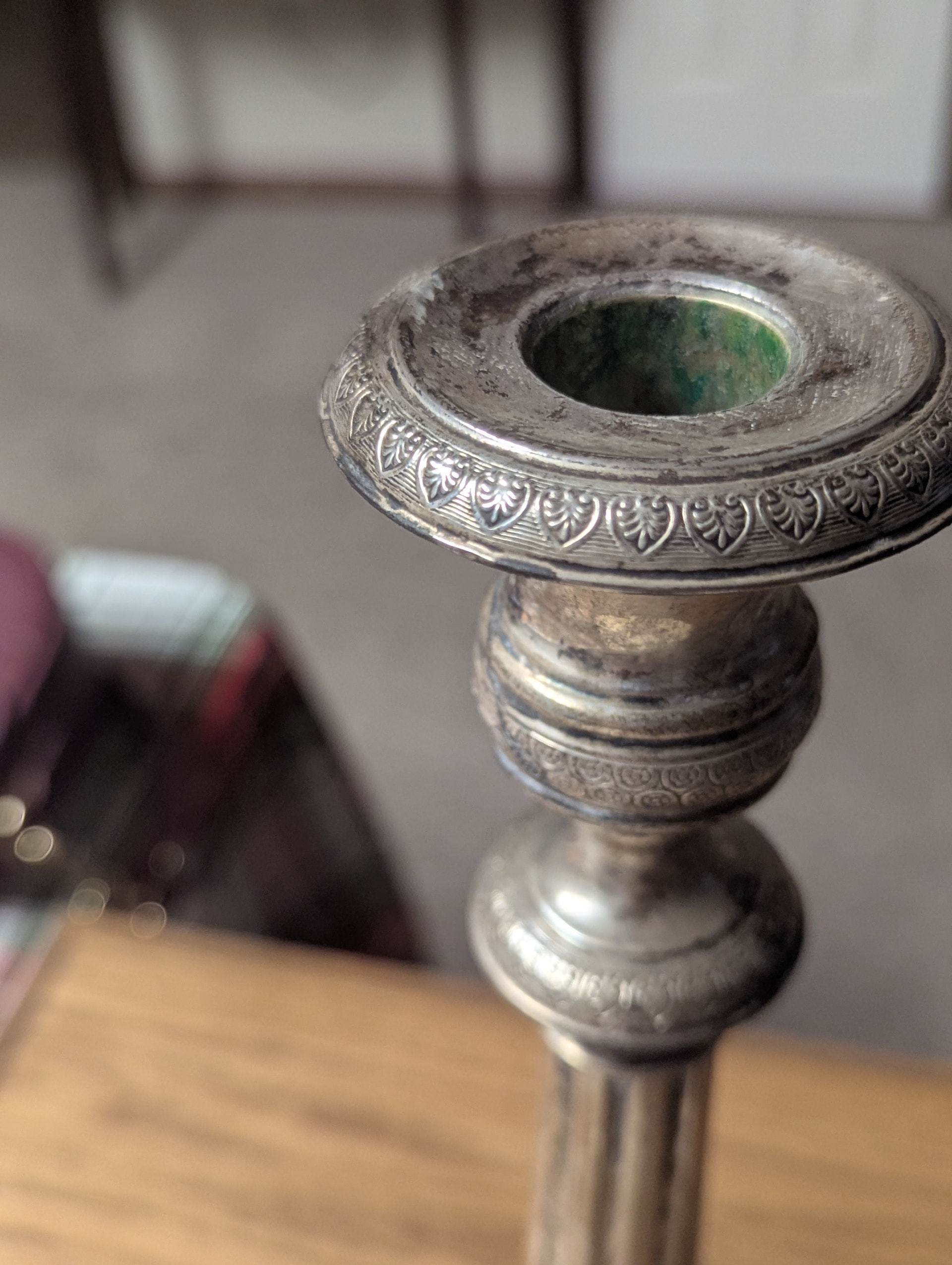 Regarding polishing, we bought a can of Hagerty spray polish on the recommendation of a very kind local dealer in silver. Would polishing the candlesticks reduce their value?
