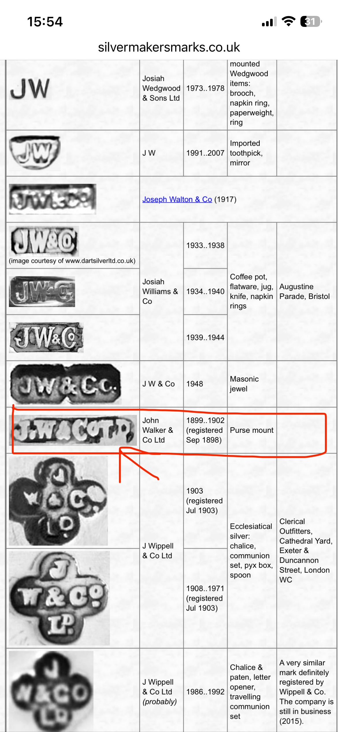 Dear Libby, that’s a very accurate observation, but the volume of the signature “won’t accommodate” the two letters “JW”, and besides, the company’s registration year is 1899, while the item comes from 1892. It’s interesting to note that John Walker worked with bag handles… The more votes, the more interesting the discussion!