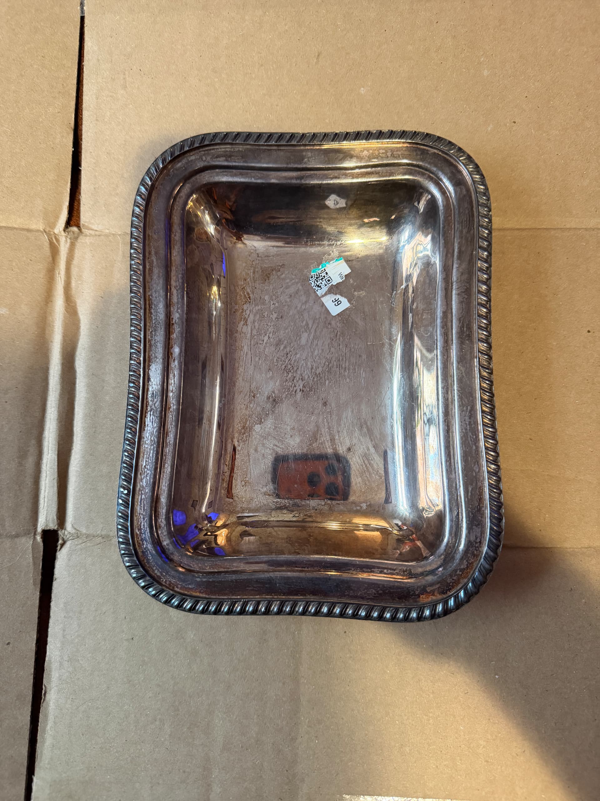 Picked this tray up at the thrift thinking I might have gotten lucky, alas I have learned it is just silver plate. For what it’s worth, it measures 9”x6.5” and is 1.75” tall, weighing in at 444 grams. I’m having trouble learning what the markings are. We have the normal crescent hallmarks that aren’t boxed in nor does it say Crescent. Underneath the markings it seems to say 139A with another indistinguishable mark before the 139A. Any help with dates or meaning would be greatly appreciated. Thanks!