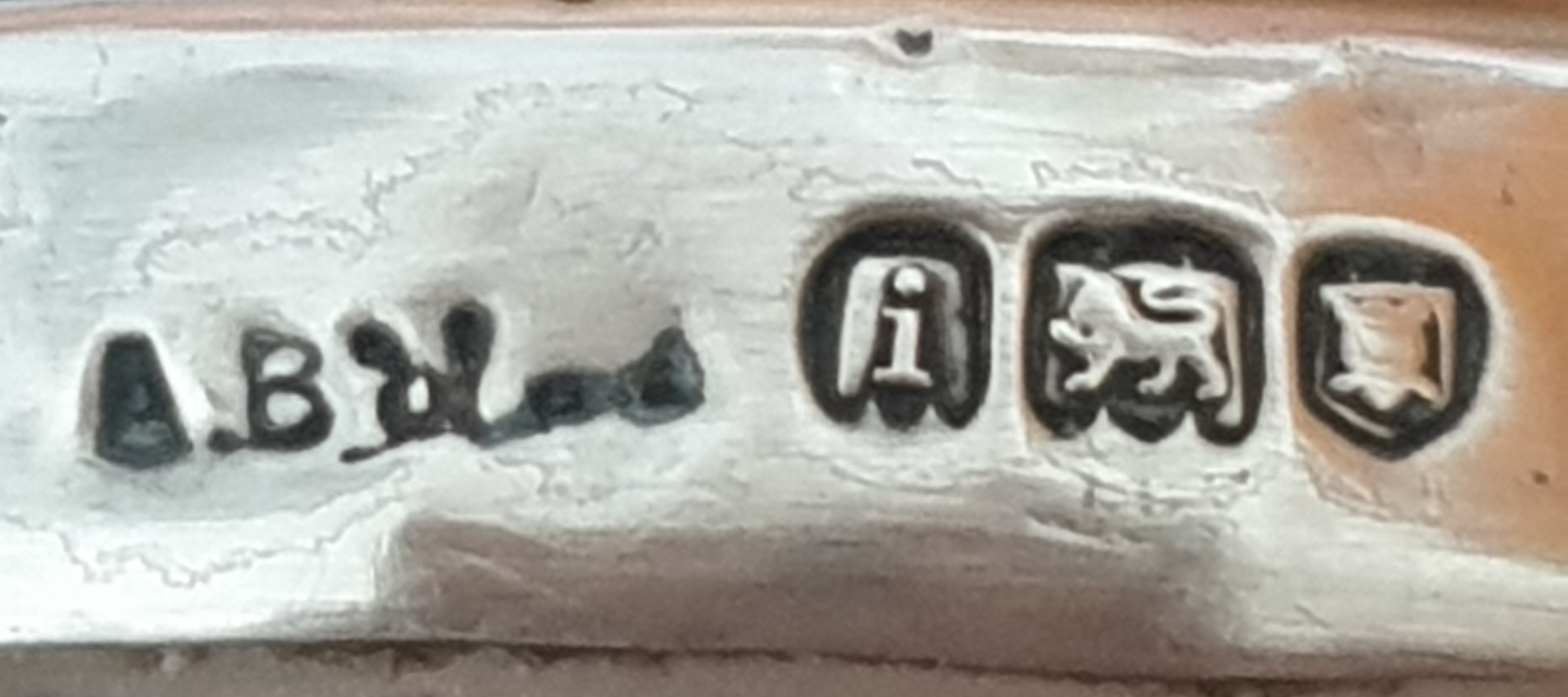 A.B is certainly the maker’s mark. Culme does not show a mark which is exactly the same but I wonder if it is this one with the surrounding either polished out or not full stamped. The curve to the right of the B appears to be in the right place.