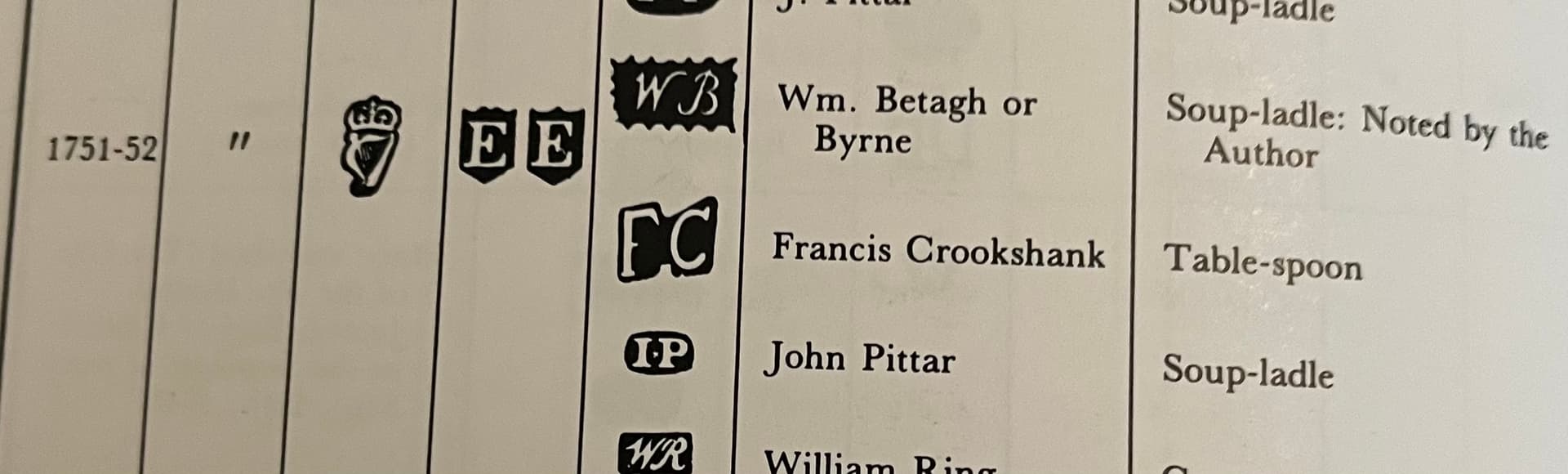 I am suggesting Byrne is the maker not the owner. Typically owners put crests and initials on their metal to commemorate themselves not the makers.