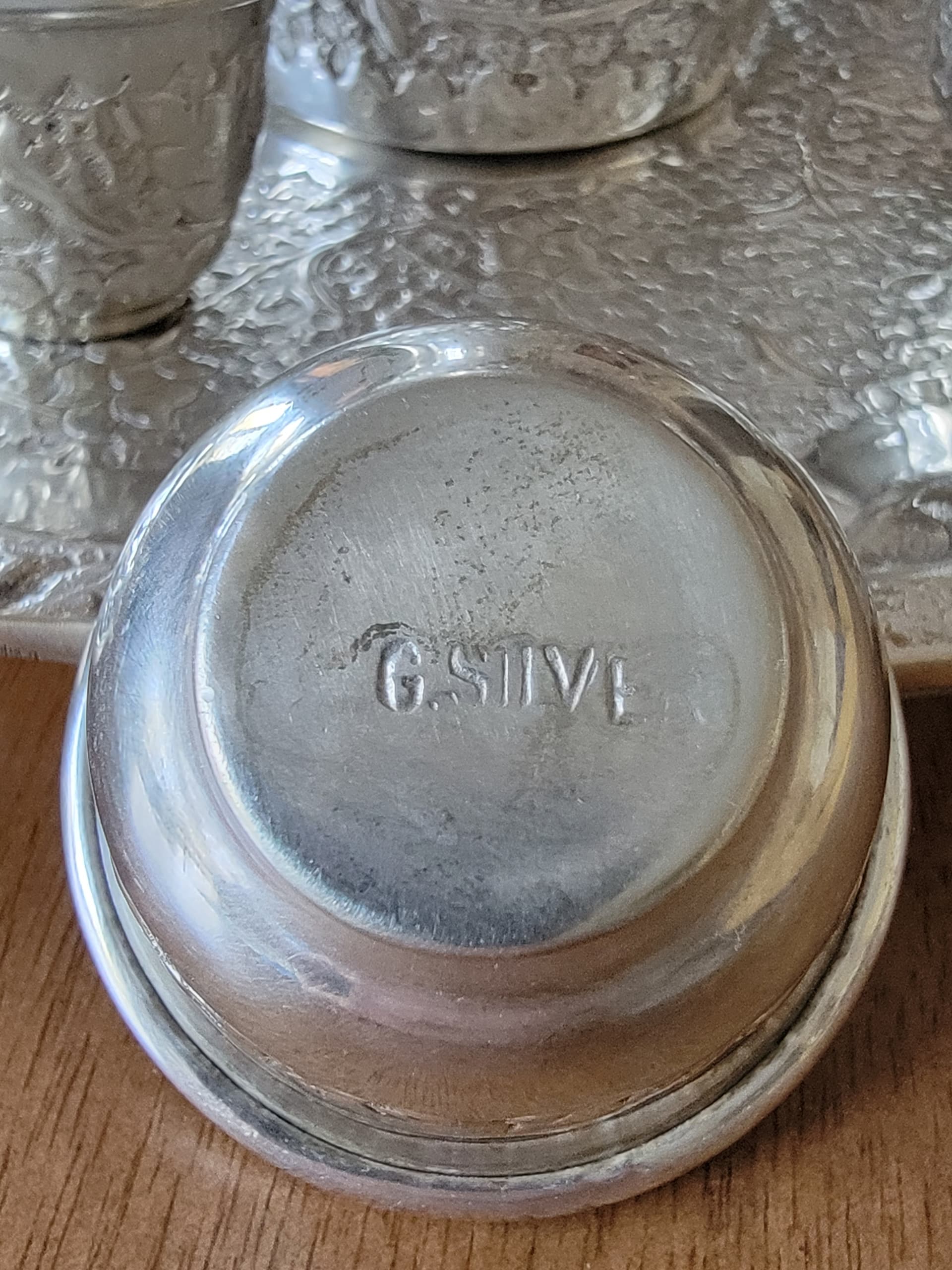 I picked up this Dallah tea set. The only marking is “G Silver”. Can anyone shed any light on the manufacturer?