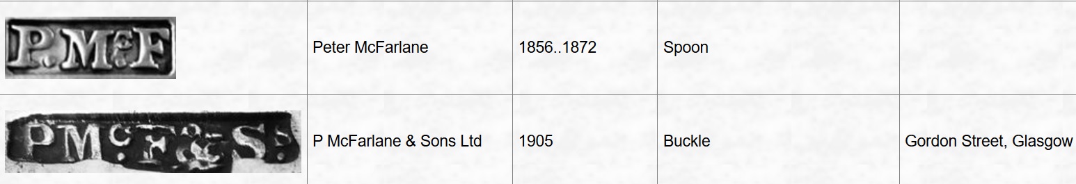 I did manage to find the mark, it is that of Patrick McFarlane. However I can find no record of when his mark was first entered.