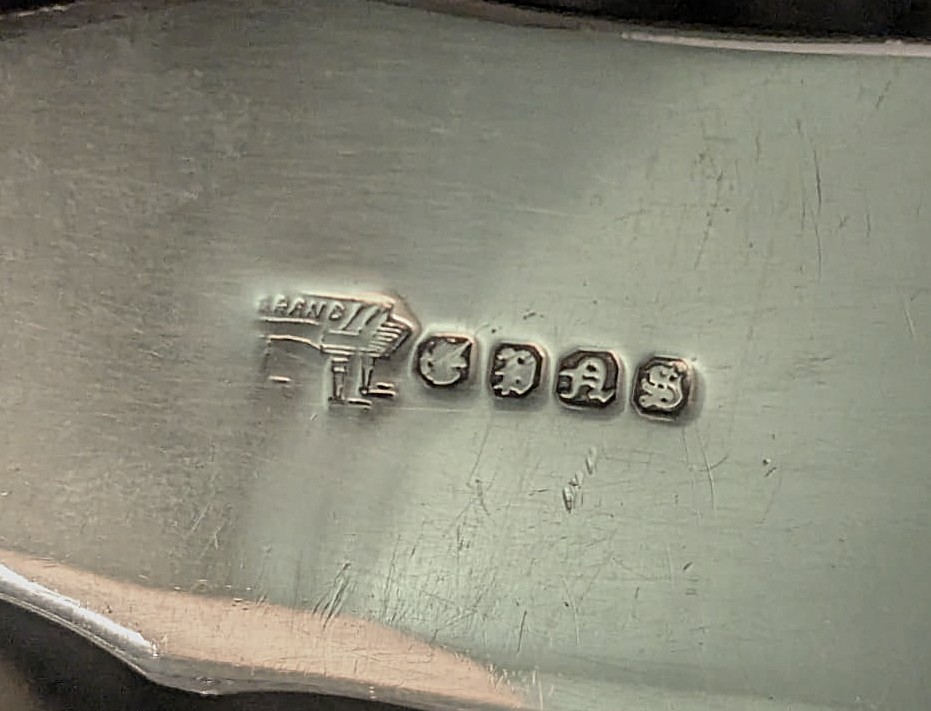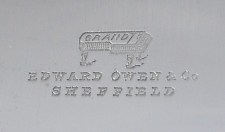 And just to be really pedantic: this is not a hallmark but a manufacturer’s mark. Hallmarks are only found on precious metals and are applied by an independent body as a guarantee of standard. The term derives from the London Goldsmiths Guild to whose guild hall gold and silver articles were sent for assay.