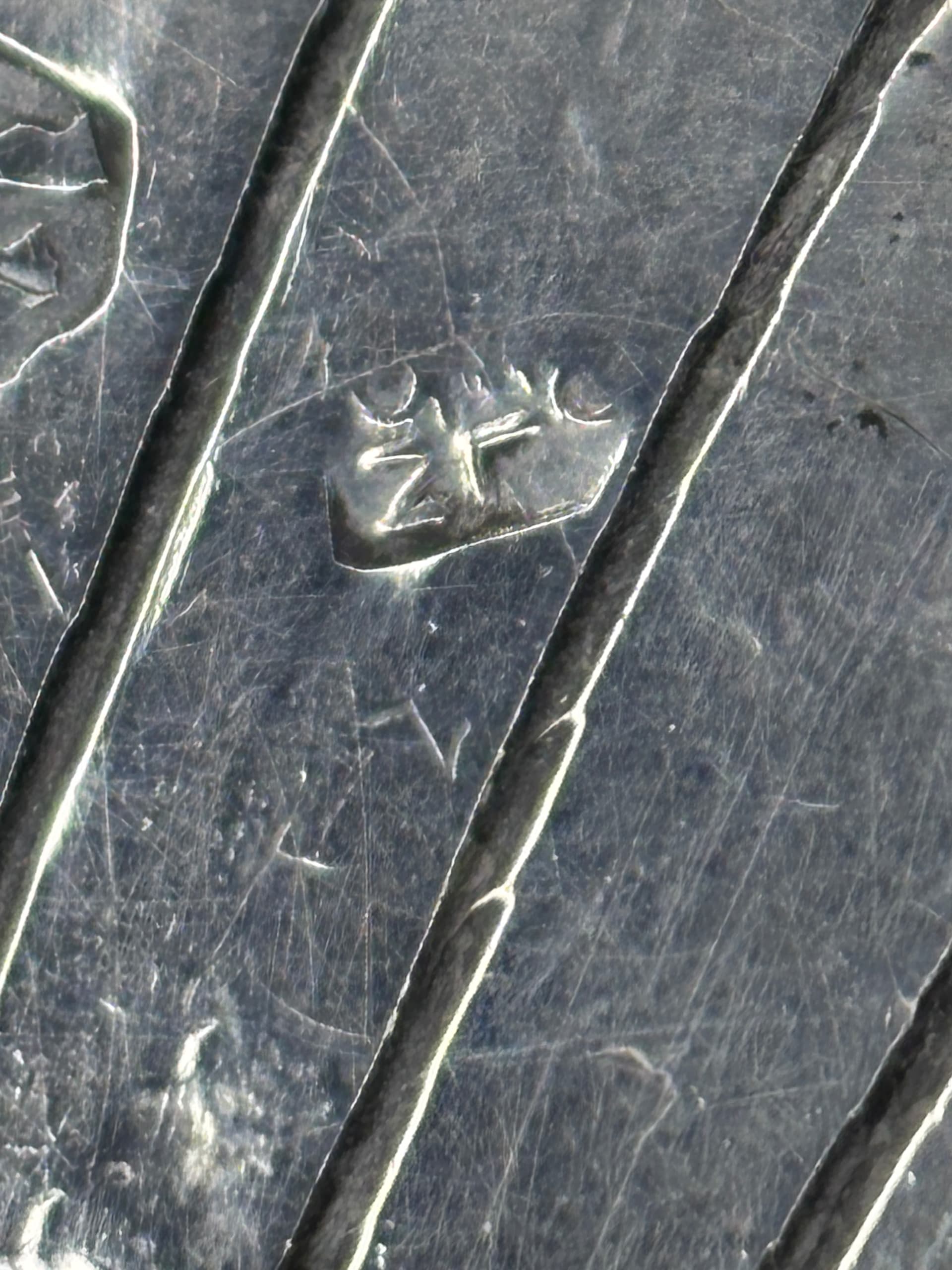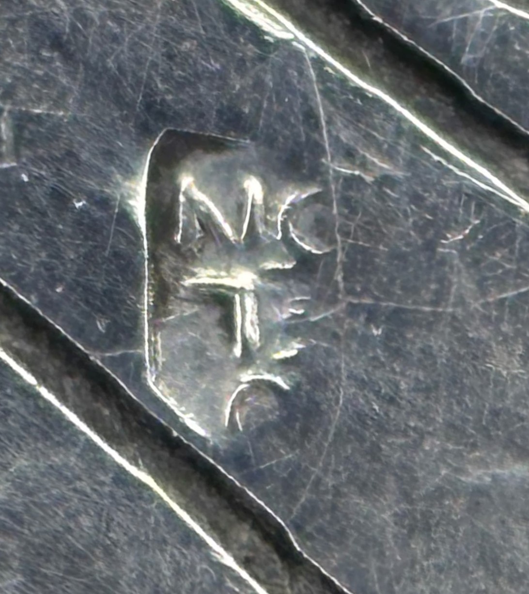 None of the marks seem to be in shields that are quite the same shape as the original. I think if I owned it I would test it for silver rather than relying on the marks too much one way or the other.