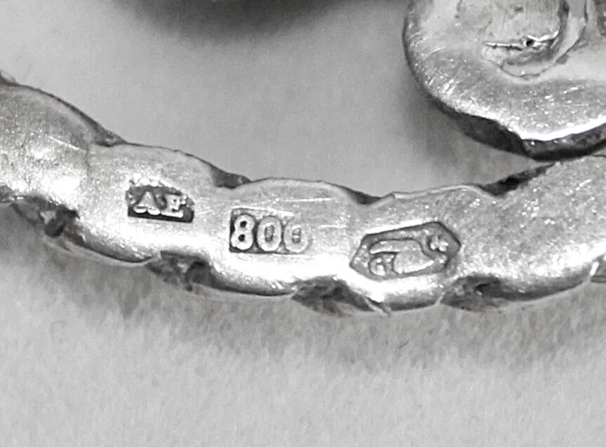 Maker - AE, silver 800, Austrian standard mark with the toucan and city letter ‘G’ for Graz. Made c. 1940-50s.
