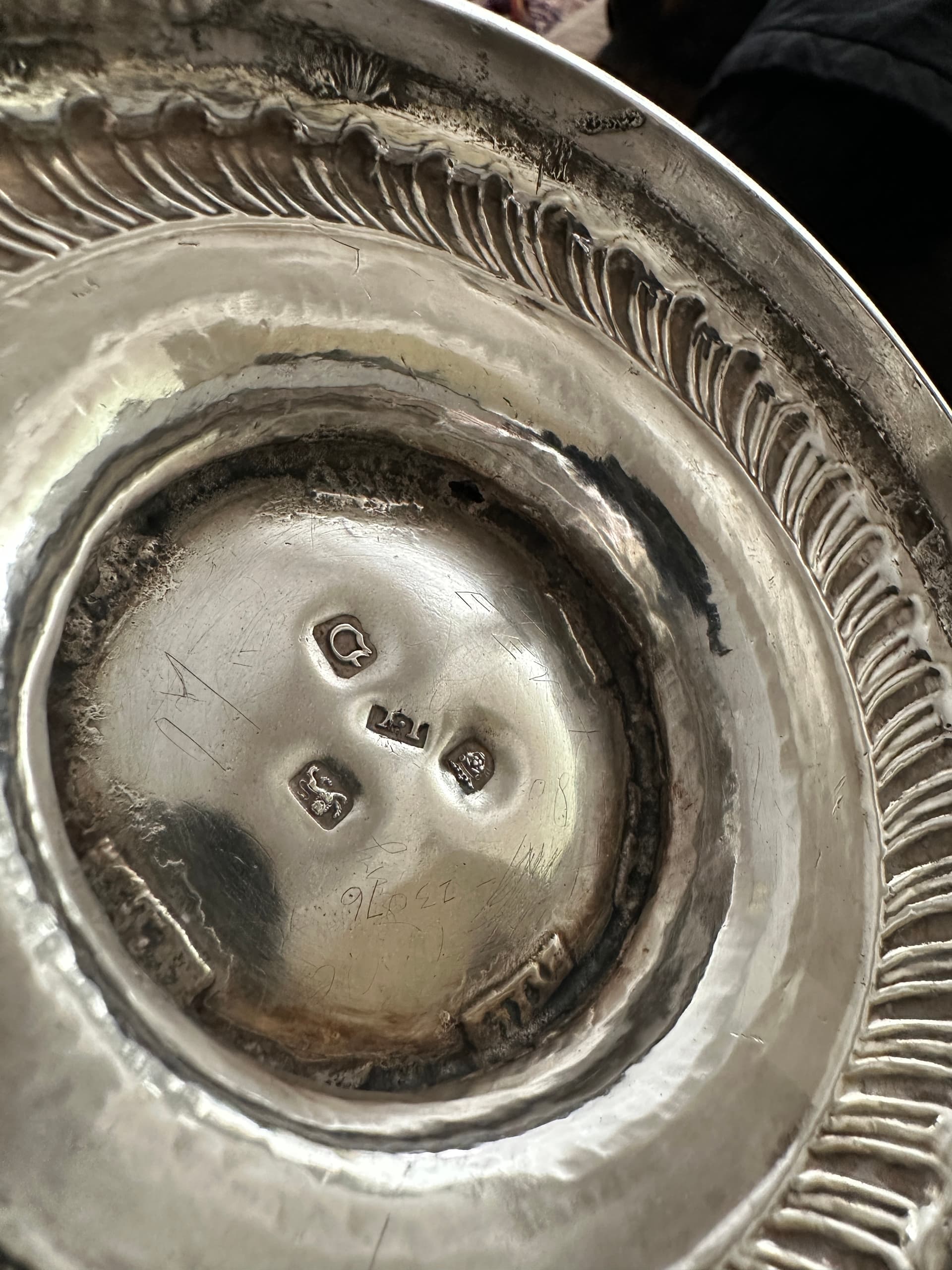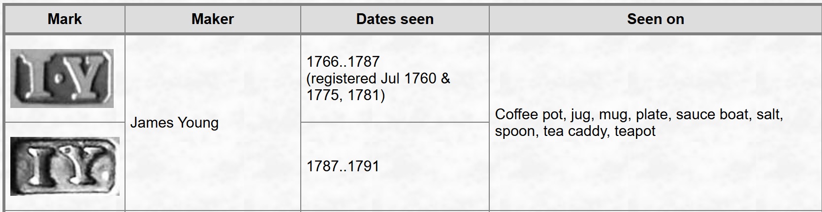 Hi all, I have a London 1769 sterling coffeepot with a maker’s mark I can’t figure out–could be “I.V.” or “J.V” or “L.V.” etc. Appreciate the help!
