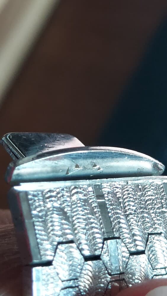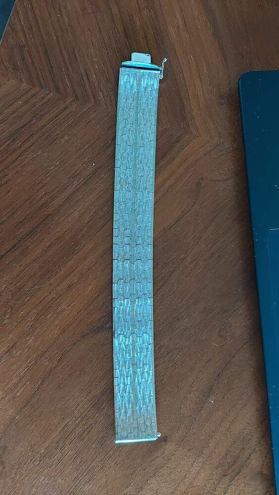 There’s no visible purity mark (e.g., 835 or 925), and no crescent + crown, so I believe these are maker’s marks, not national hallmarks. The honeycomb texture and clasp style suggest German modernist design, possibly from Pforzheim or southern Germany.