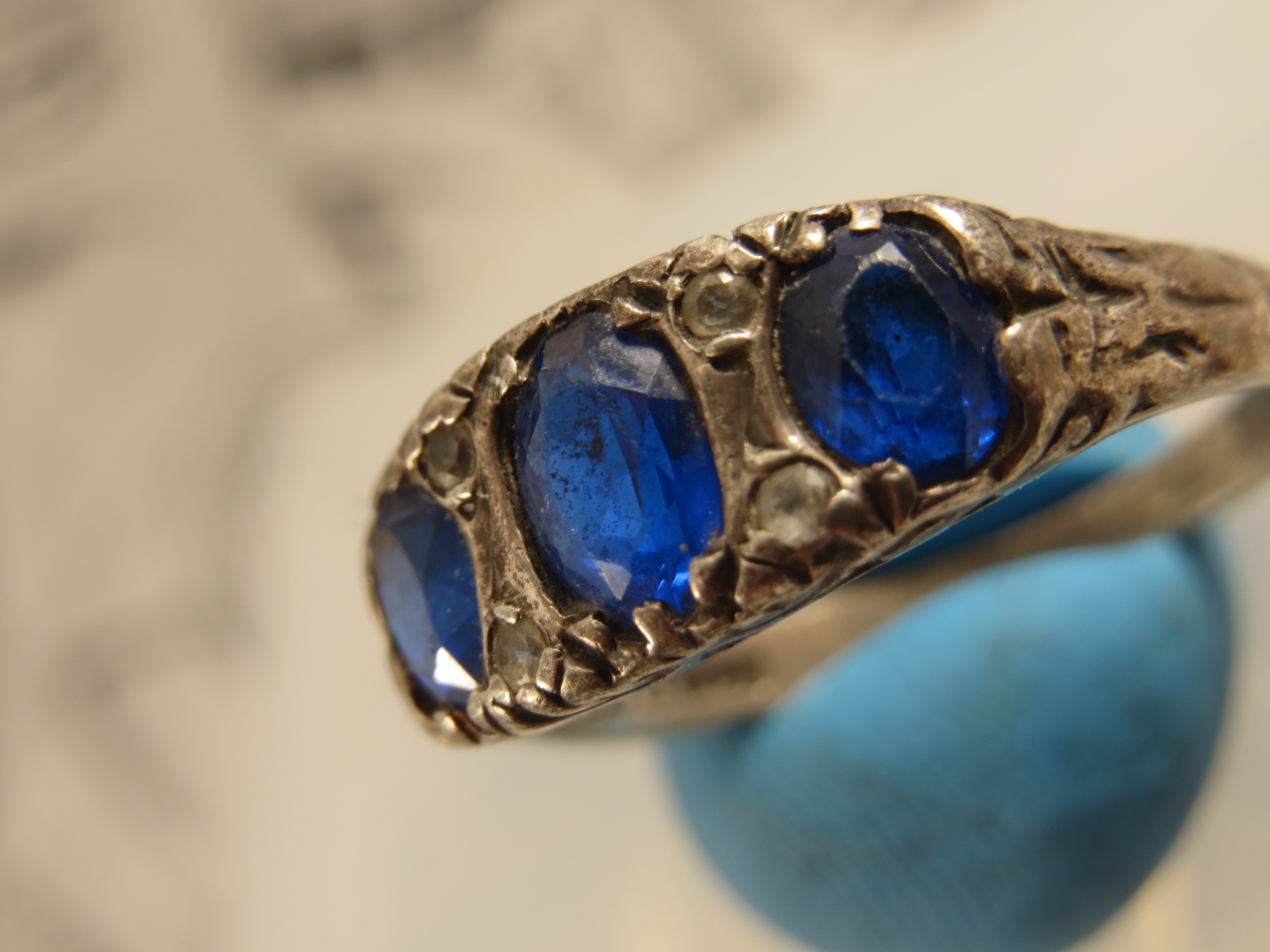 I can’t help with the stones but the hallmark is a Dublin sterling silver mark with the date letter l (lower case L) for 1977. The maker, IDJ, is not known to me.