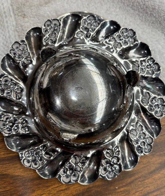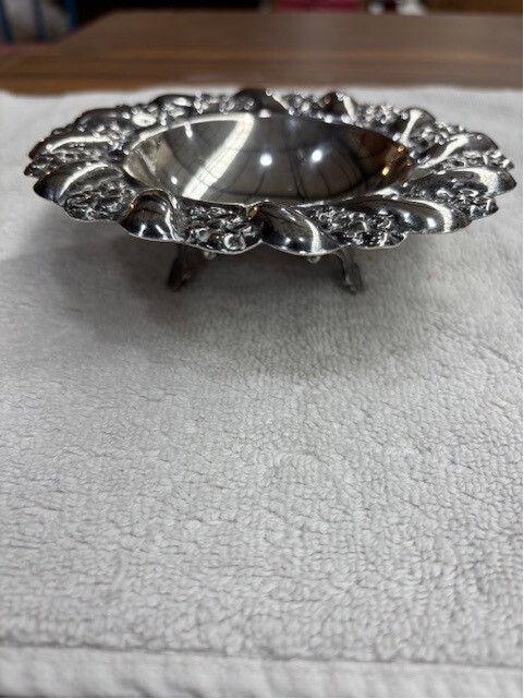 But okay since you have asked. This is a bowl with a floral design, probably late nineteenth or early 20th century. It maybe made of sterling silver or plate or even nickel silver, probably plate and it purpose might be to put stuff in.