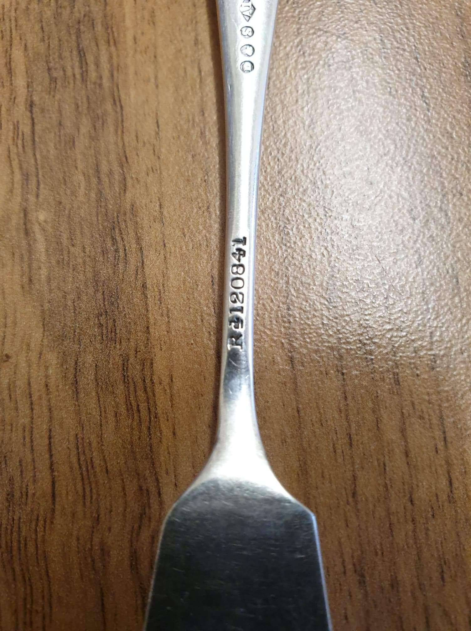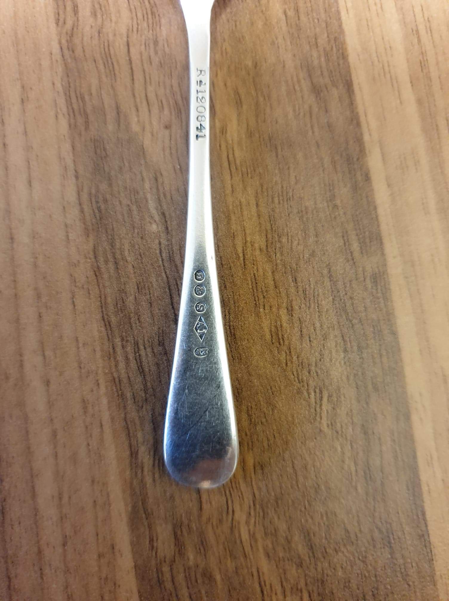 This is a British electroplate mark, not a silver hallmark. The clues are in the EP (for electroplate) mark and the A1, which shows that the plating is the maker’s best quality / thickness. D&S are the manufacturer’s initials but I don’t know for sure who they are. The 6 figure number beginning with Rd is the design registration number. 120841 was issued during 1889 so we know that your butter server was not made before that date but it could have been made any time after that.