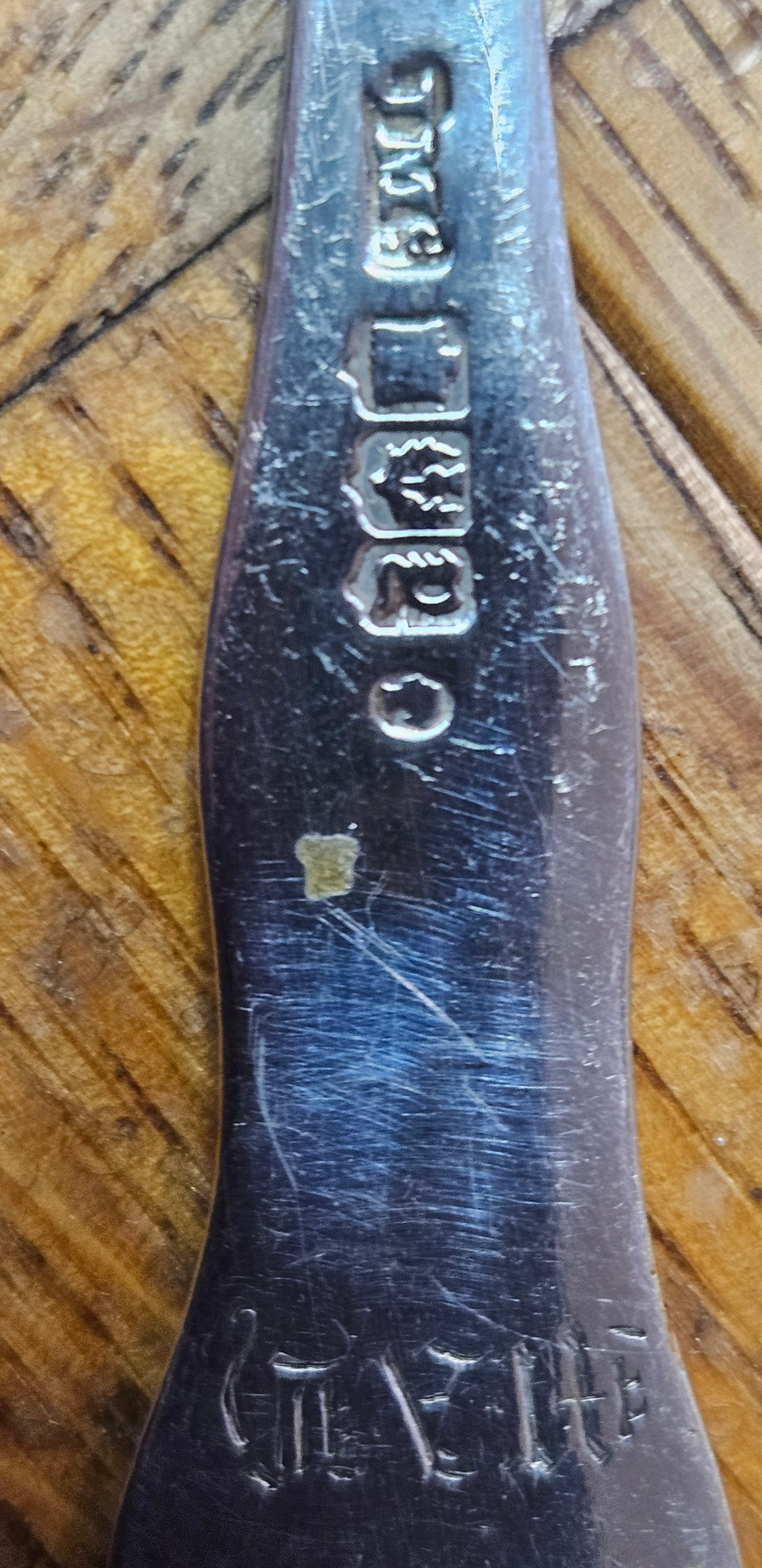My first thought was the irregular shape on your teaspoon was an over-stamp-- someone had bought silver off someone else and over-stamped it for resale “J Mc”. Perfectly legal and often used retail marketing ploy but I don’t think that is the case here.