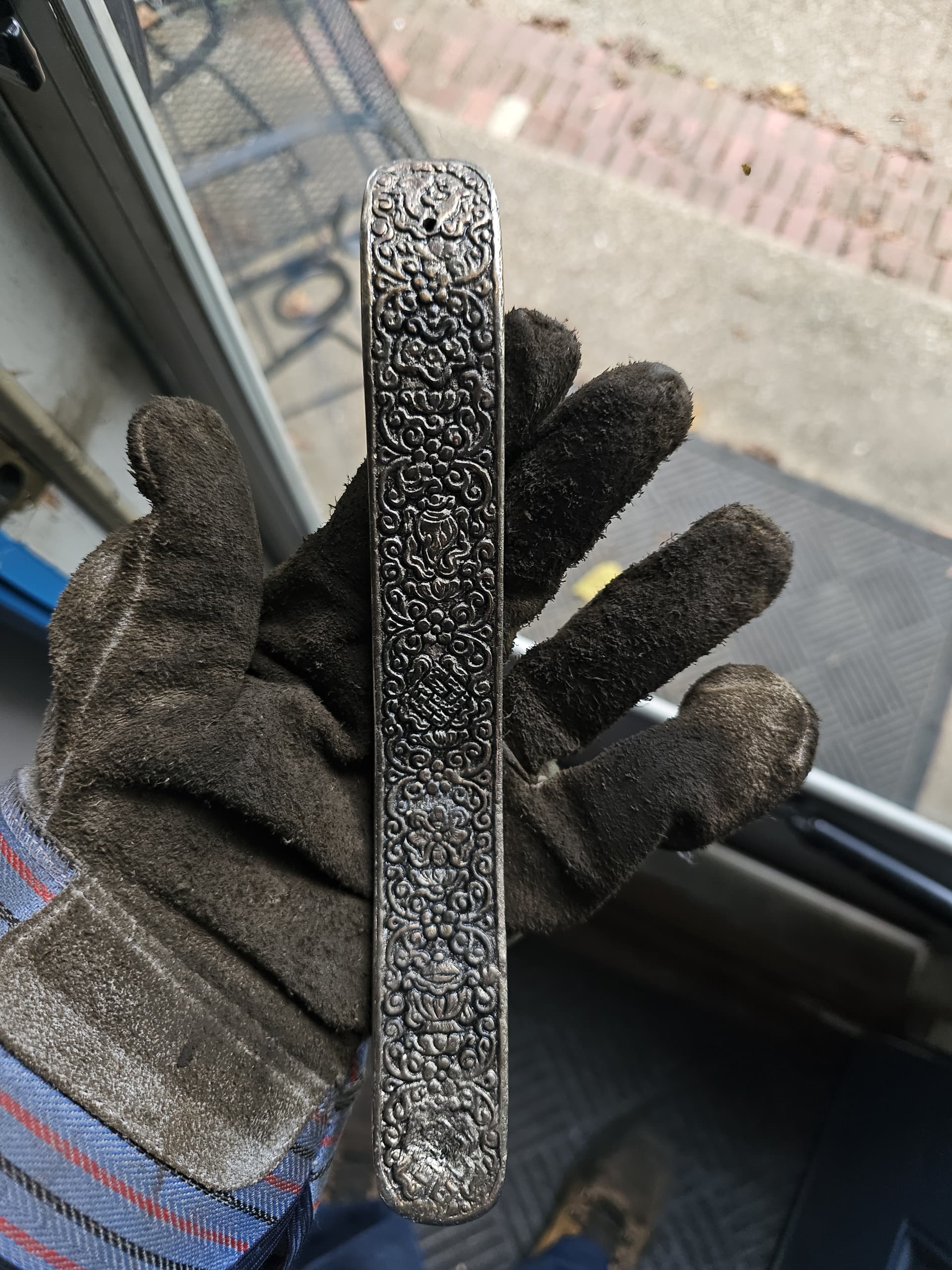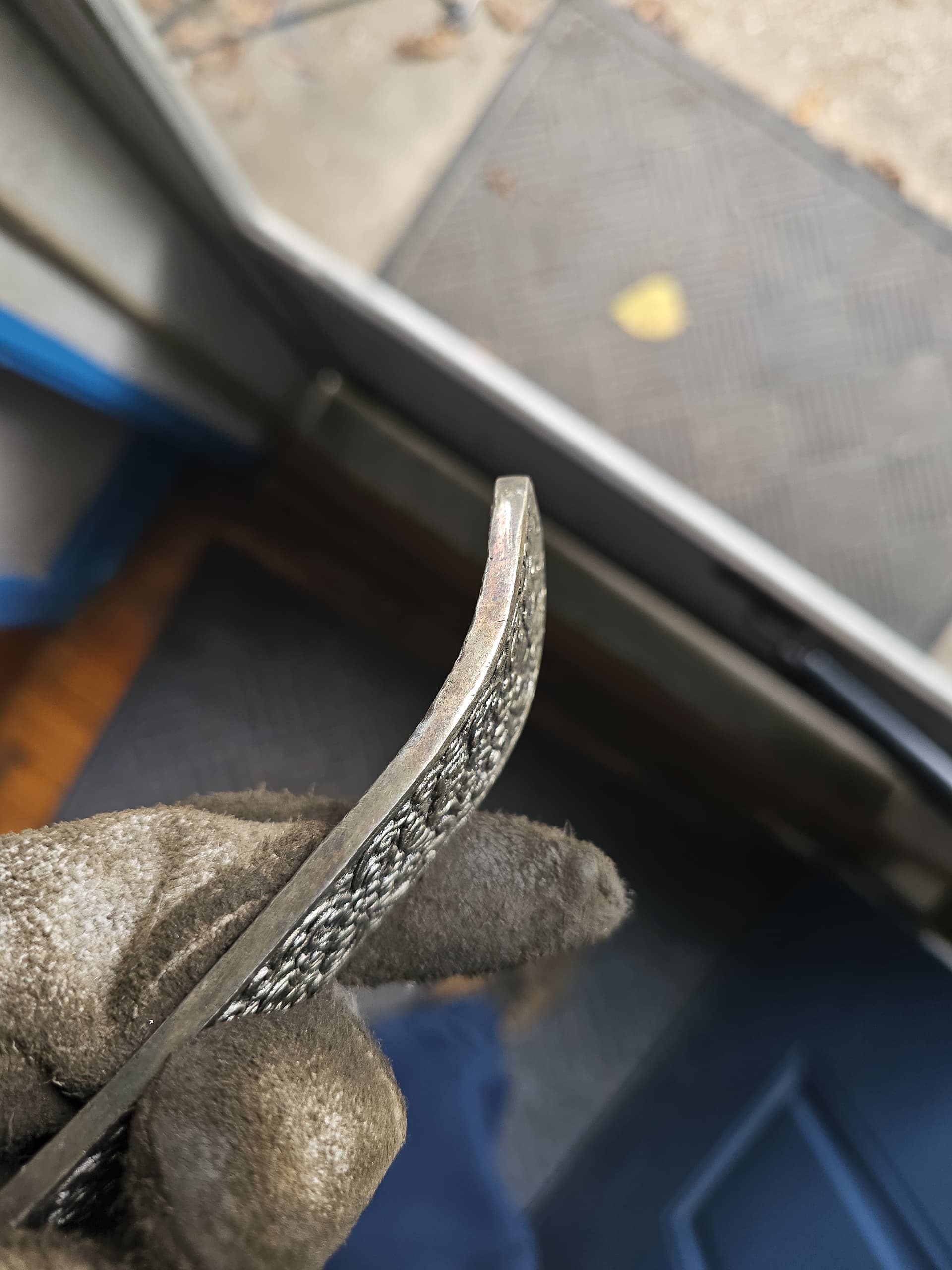 I have an engraved piece of something that may possibly be silver. I don’t know the object is. I acid tested the outside and the inside of the object. Whatever the metal is, it did not appear to be disappearing after checking it with silver testing acid and I also tested a little bit with 18k acid. I read something that said it could possibly be platinum if it doesn’t change color. I’ve posted some photos of the item and