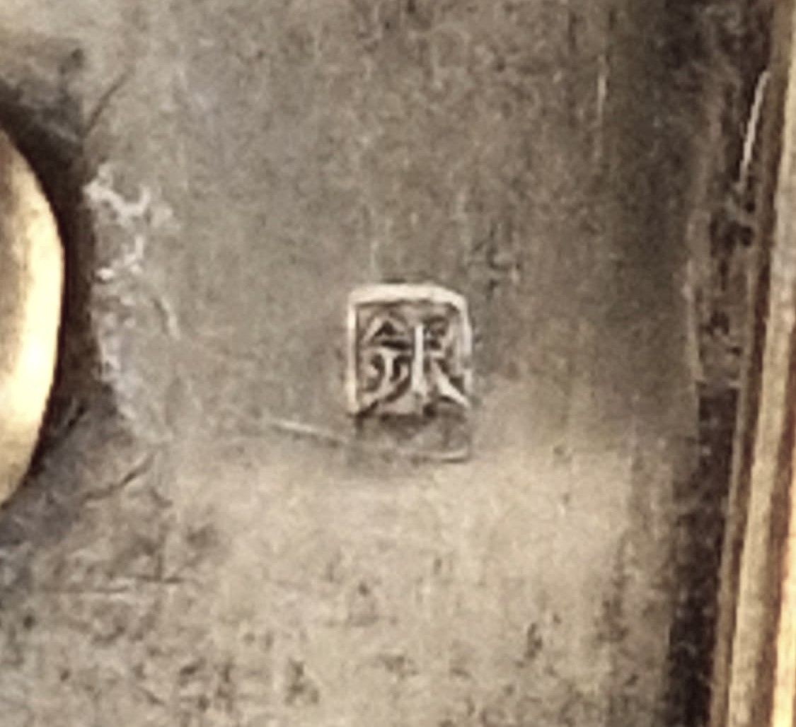 Can someone help me identify the hall mark shown? The picture is of a Japanese Satsuma buckle set in either silver or white metal and probably dates to between 1890 and 1910. No other marks. Apologies for the quality of the picture. The mark is very tiny. Thank you in anticipation!