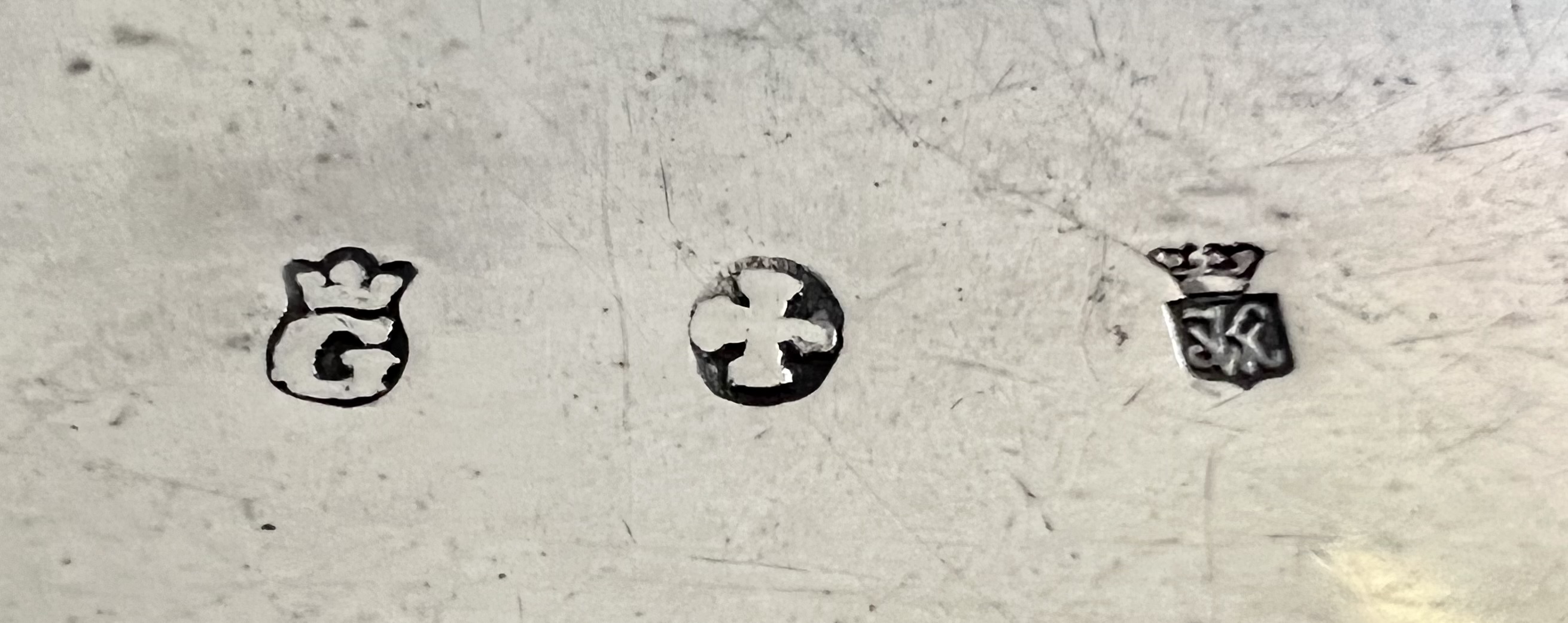 Greetings – first-time poster here, and hoping for some help identifying these marks on the bottom of a silver box. I assume it’s British because of the crowns, but of course have no way of being certain. Thanks for any and all guidance.