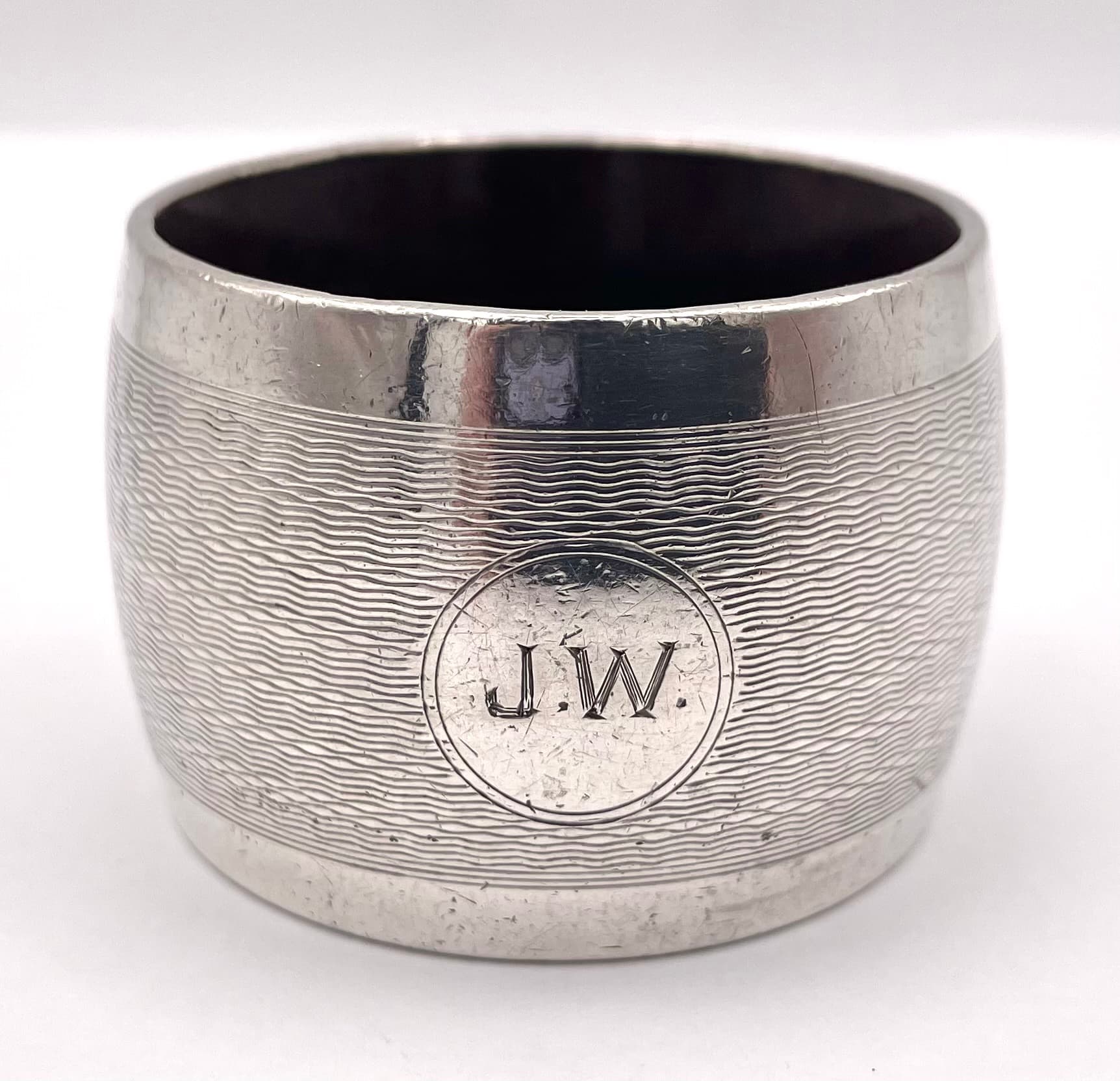 I think it must be Bakelite as 1929 is exactly in the period that Bakelite was being used beyond commercial applications for costume jewelry and novelties. Probably done (along with the then modish machine turning) to announce a kind of “this is not your father’s napkin ring”. Possibly the silver’s antimicrobial/antiseptic properties neutralized the Bakelite smell? Just a guess, I’m no chemist. I think it’s pretty cool though.