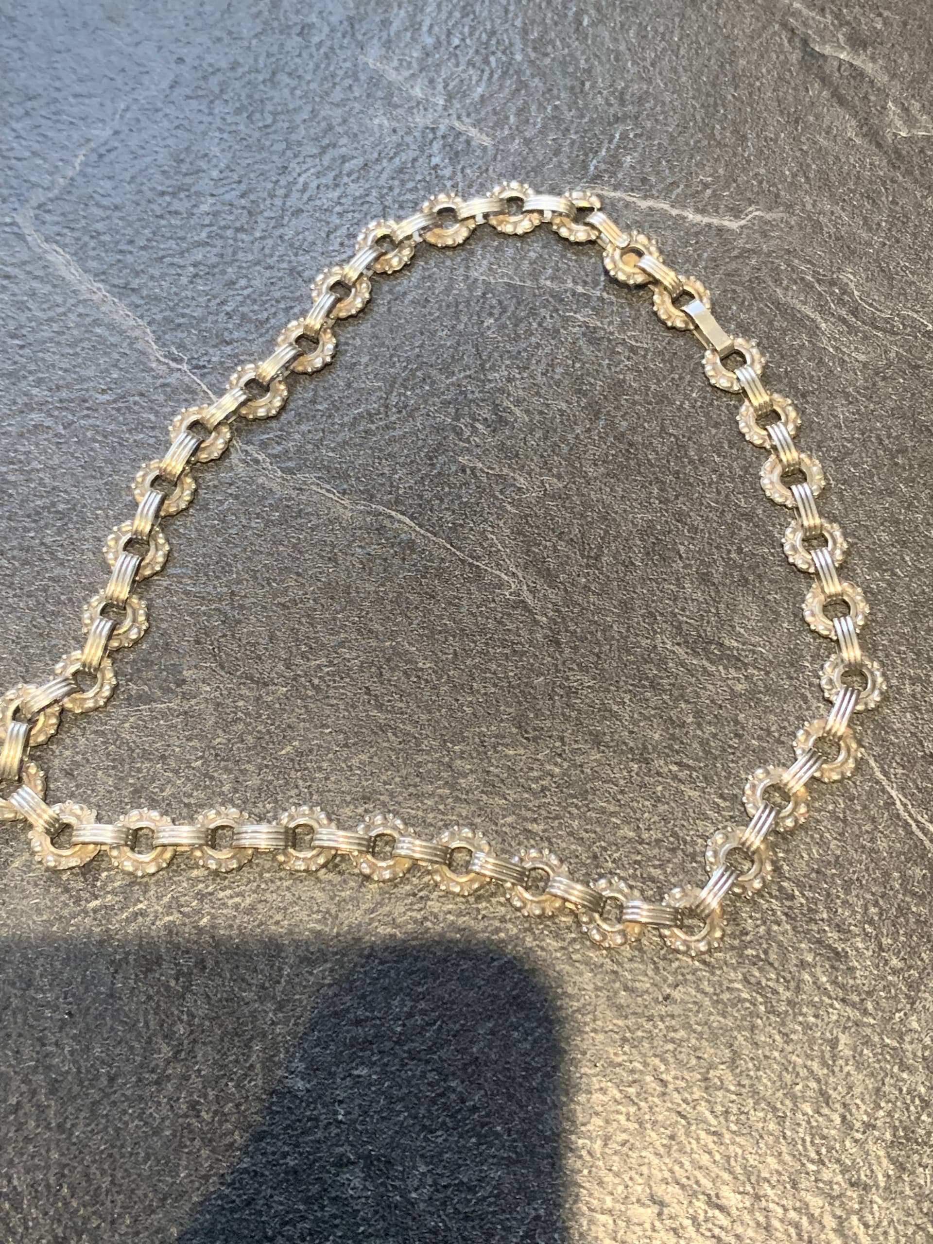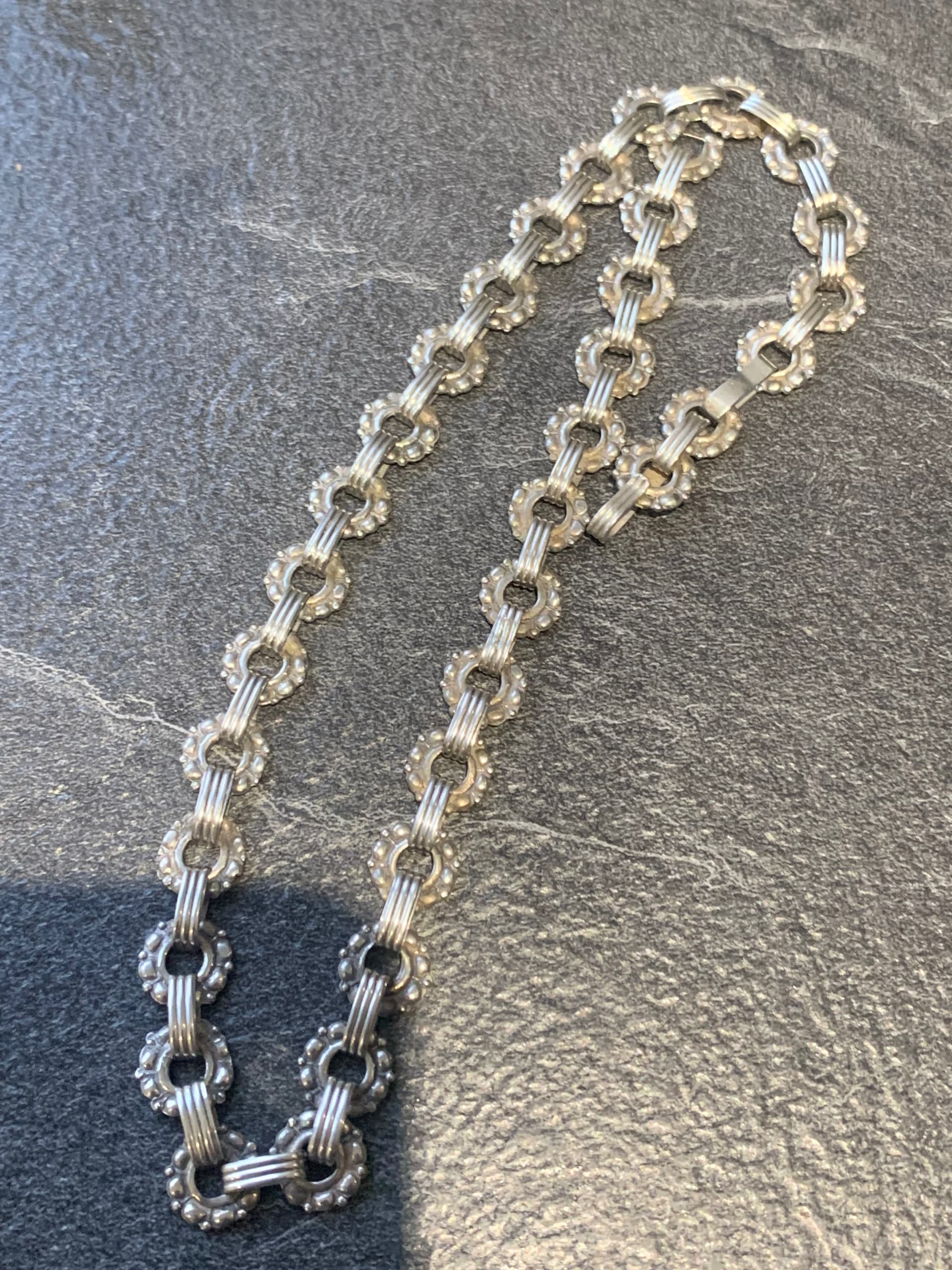Hi, I’m new here and hoping that someone could help me identify the maker of this vintage Scandinavian silver necklace (and any other info like age etc). I’ve been scouring the web with no luck! It does have quite an unusual clasp (see photo) Thank you!