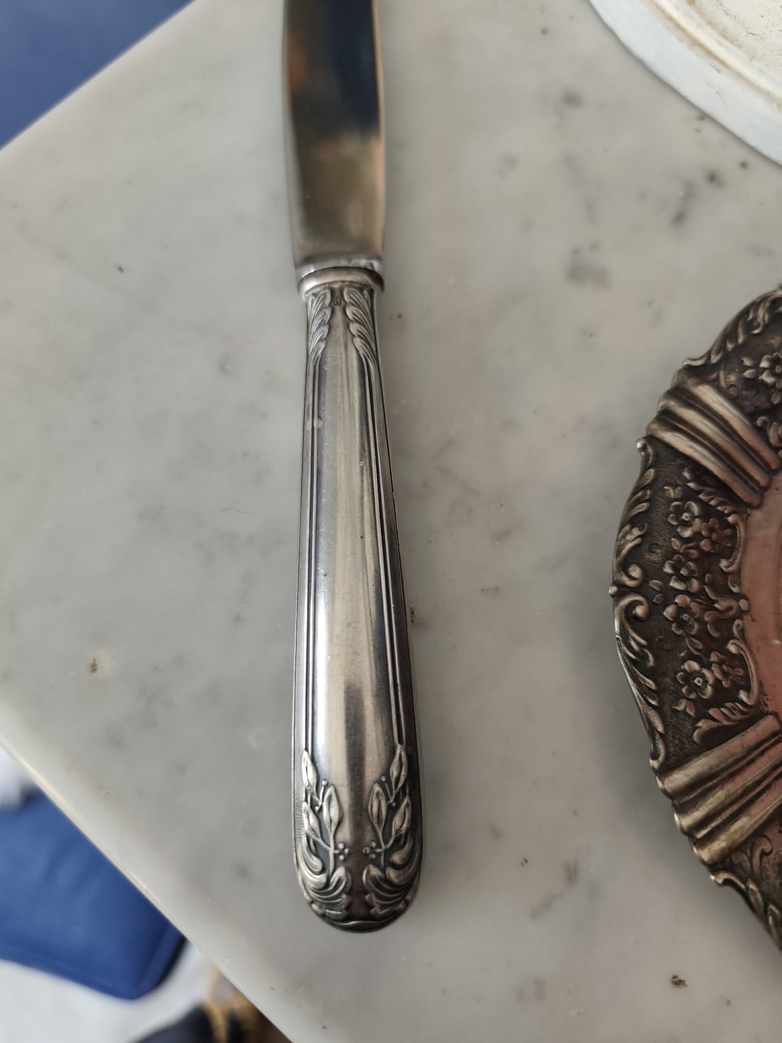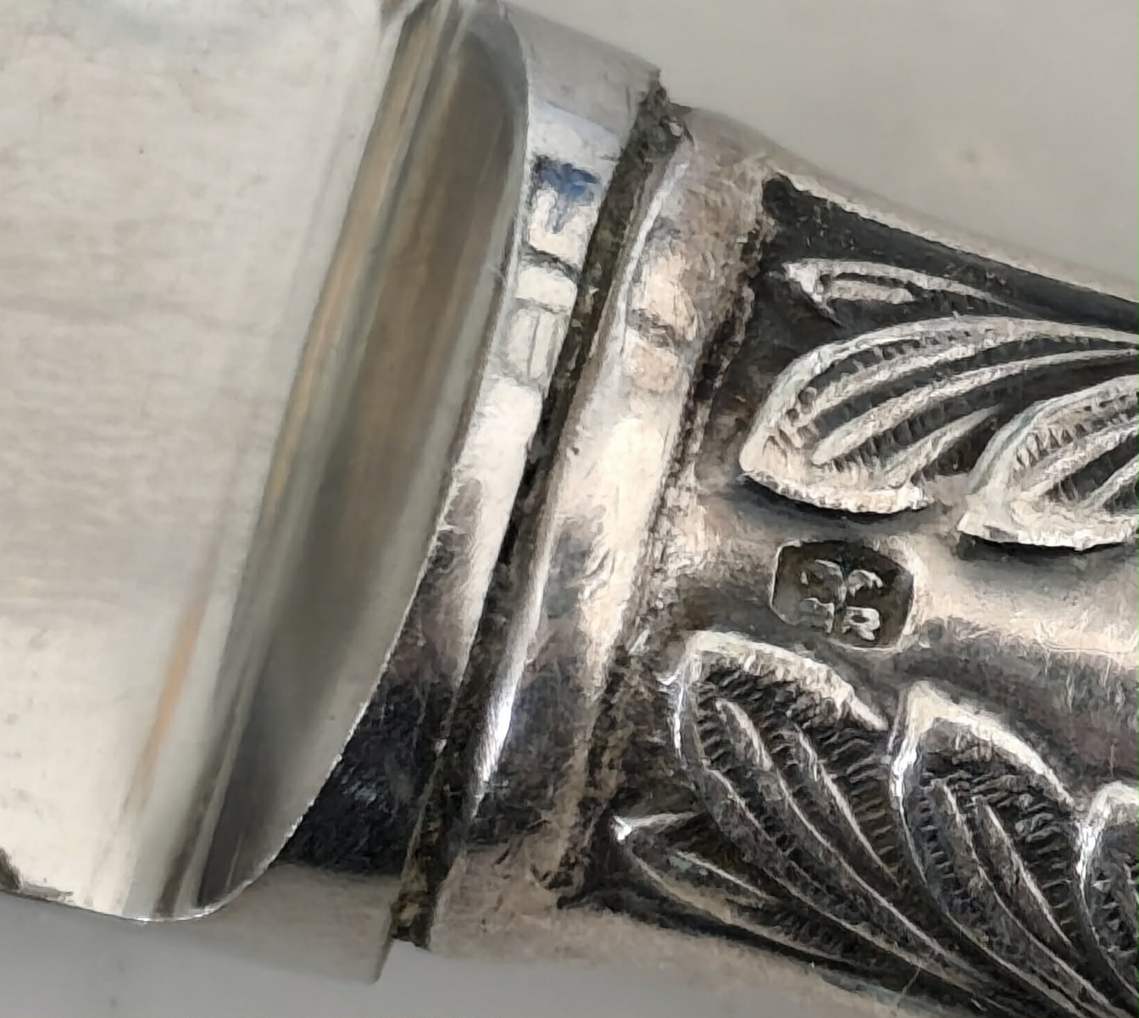 Hello, dear experts. Google can’t find this brand on antique silver-plated knives. It resembles the letters HR and a soaring eagle. I took a lot of photos of the stamps on different knives in this set. But unfortunately, everywhere the first letter is blurred.Thank you in advance