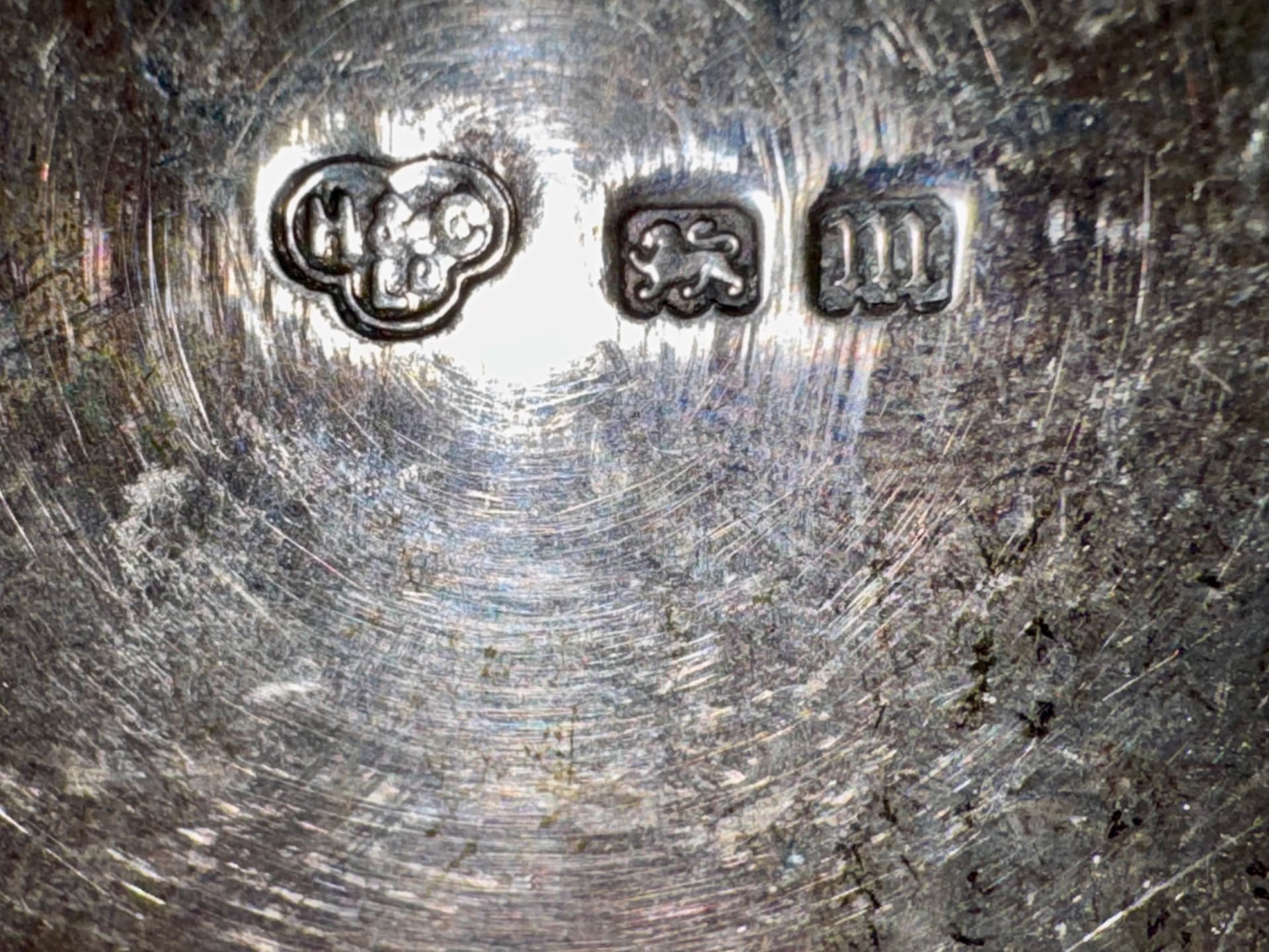 Hamilton & Co.'s Indian-made silver often used “pseudo-hallmarks” that imitated the British system to reassure European buyers of their quality. A genuine London hallmark provided a formal, legal assurance that these pseudo-marks could not offer.
