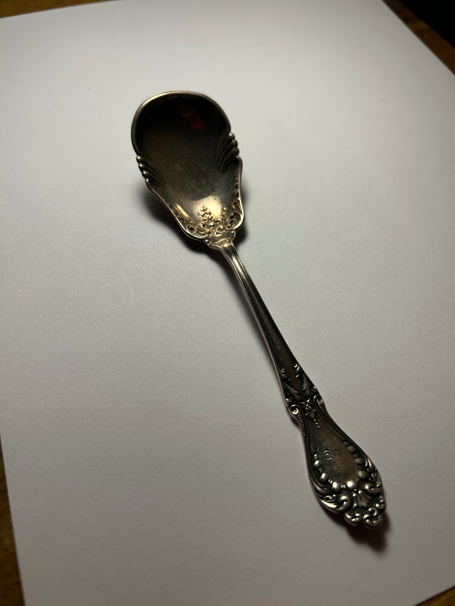 Hey folks, this one is giving me trouble and I can’t find one on the internet. Could be a berry or a sugar spoon. Photo of stamp on back with either I or H in the center. Thanks!