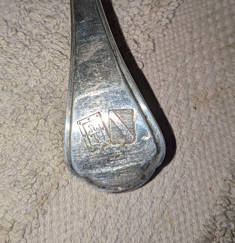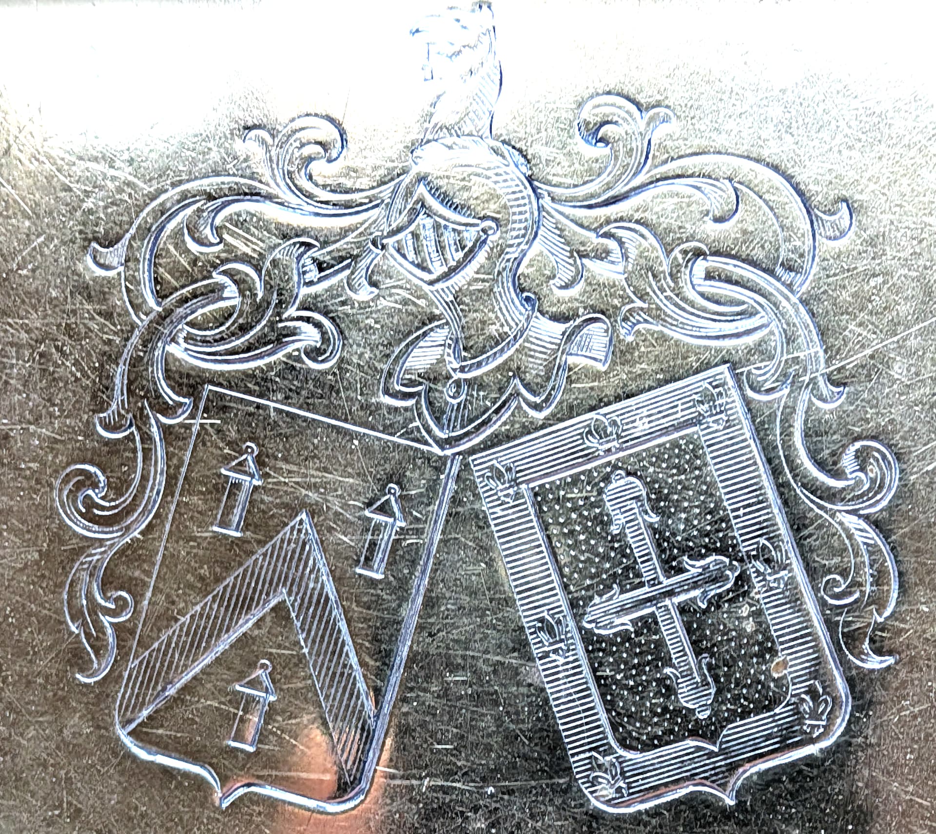 This is likely a piece commissioned for a wedding. We also have a set of flatware with the same crests