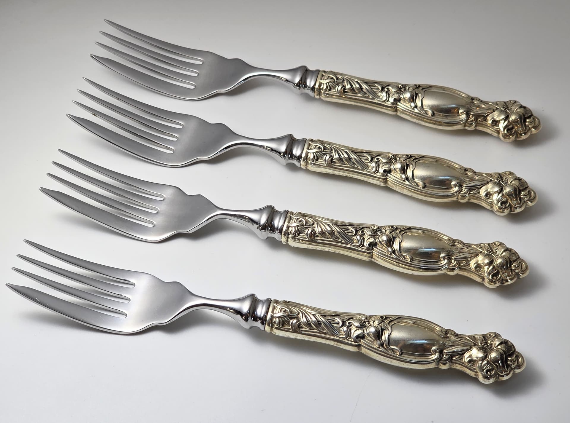 Hello! I’ve obtained these four forks. I recognized the Frontenac pattern but it appears someone combined stainless fork tops with Frontenac sterling silver hollow knife handles. The handles are marked INTERNATIONAL STERLING .925. However, it looks odd.