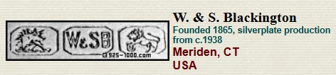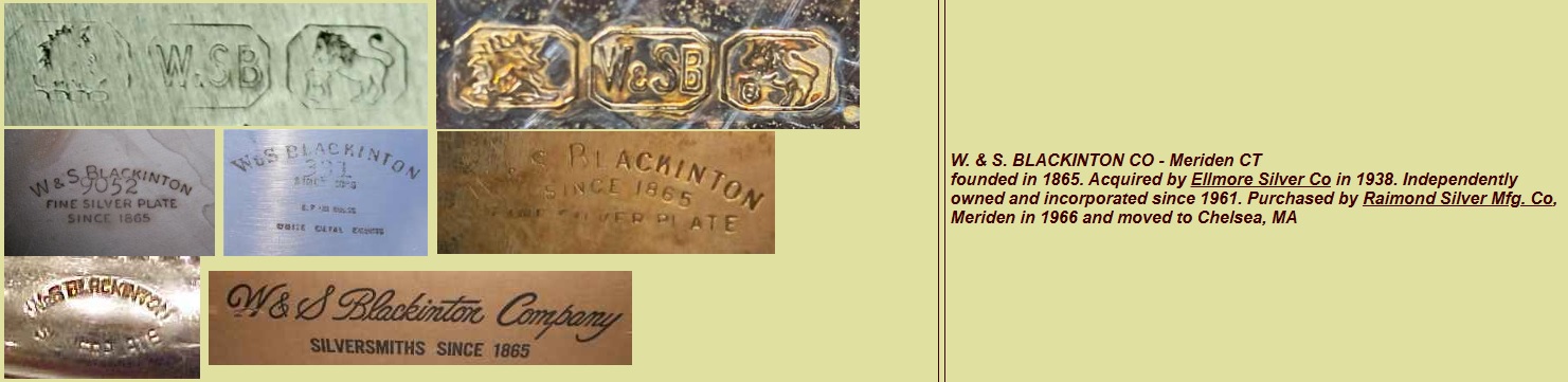 W.S. Blackington was a silver manufacturer from Meriden, CT. They were purchased by Elmore Silver Company in the 1930’s and after being purchased, they started making silverplated holloware. Elmore Silver stopped manufacturing in the early 1960’s.
