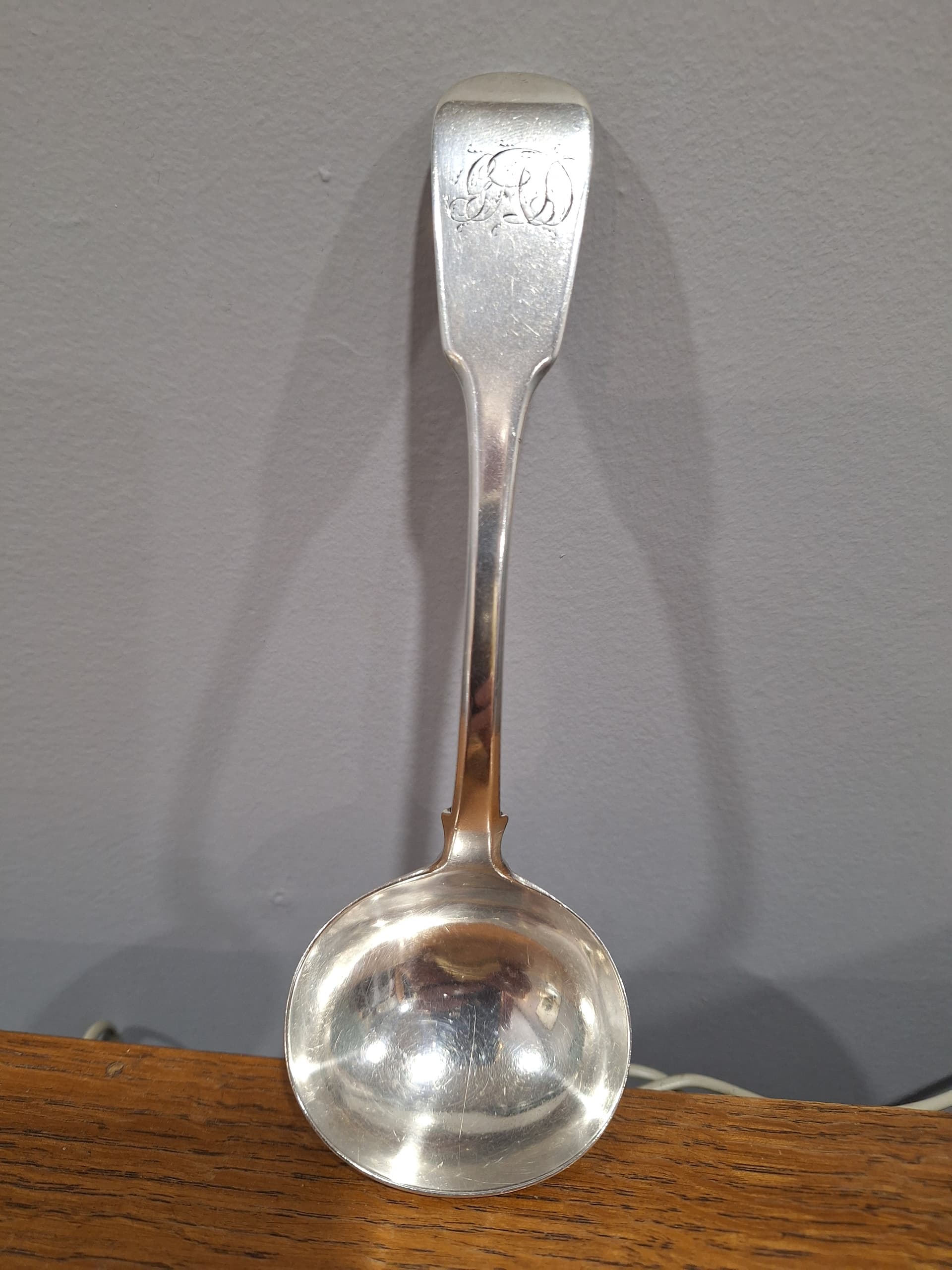 The bowl looks like a ladle but it lays flat like a spoon. Is it a serving spoon or some sort? I have it as london 1828 Phillip phillips, though this seems to be an over stamp. Also note the cool journeyman’s mark. Thoughts? Thanks