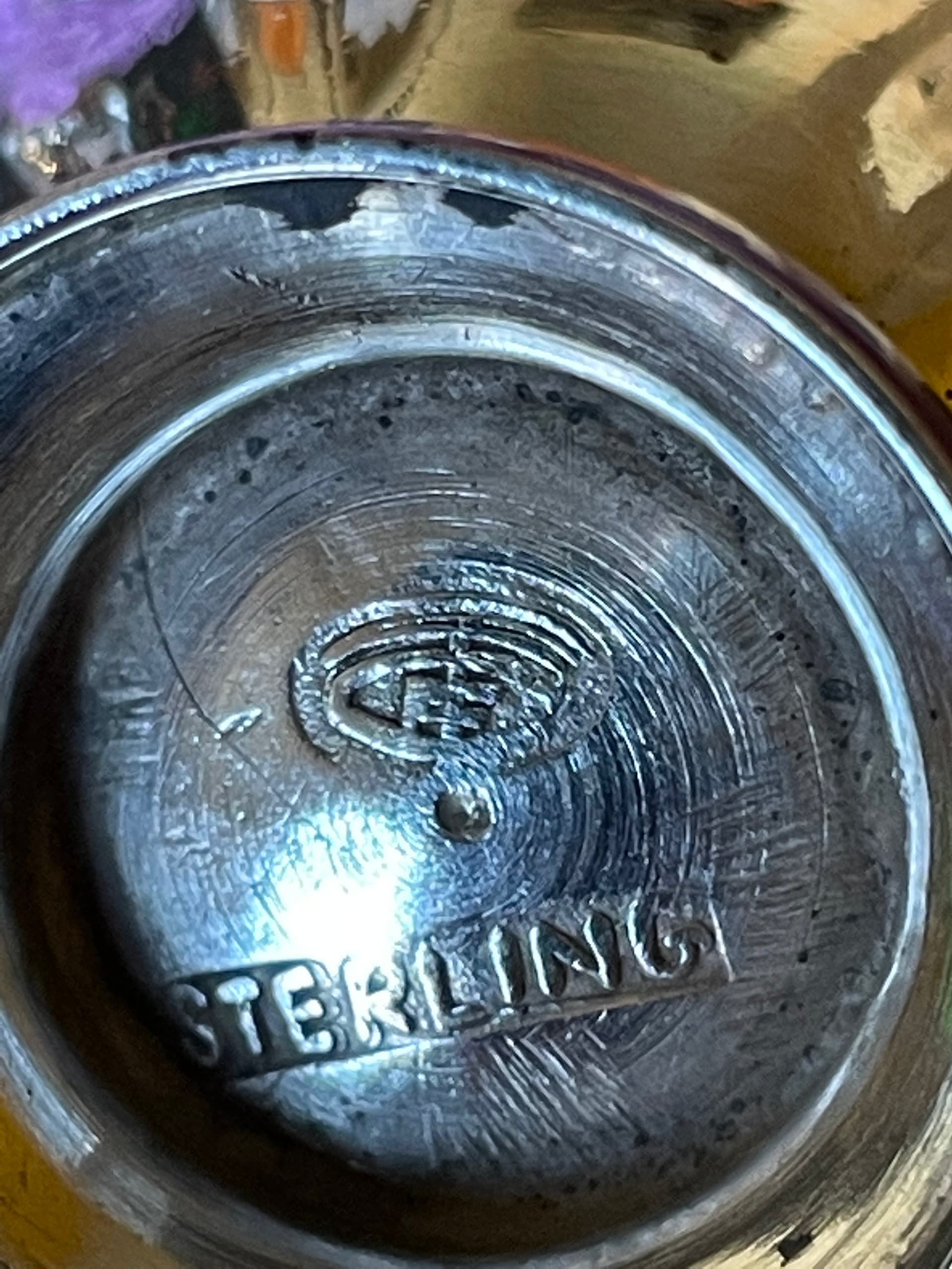 I have a Maker’s Mark that I am having difficulty identifying and could use help. The marks are on salt and pepper sets and are marked STERLING. The makers mark is oval as pictured below. Any thoughts?