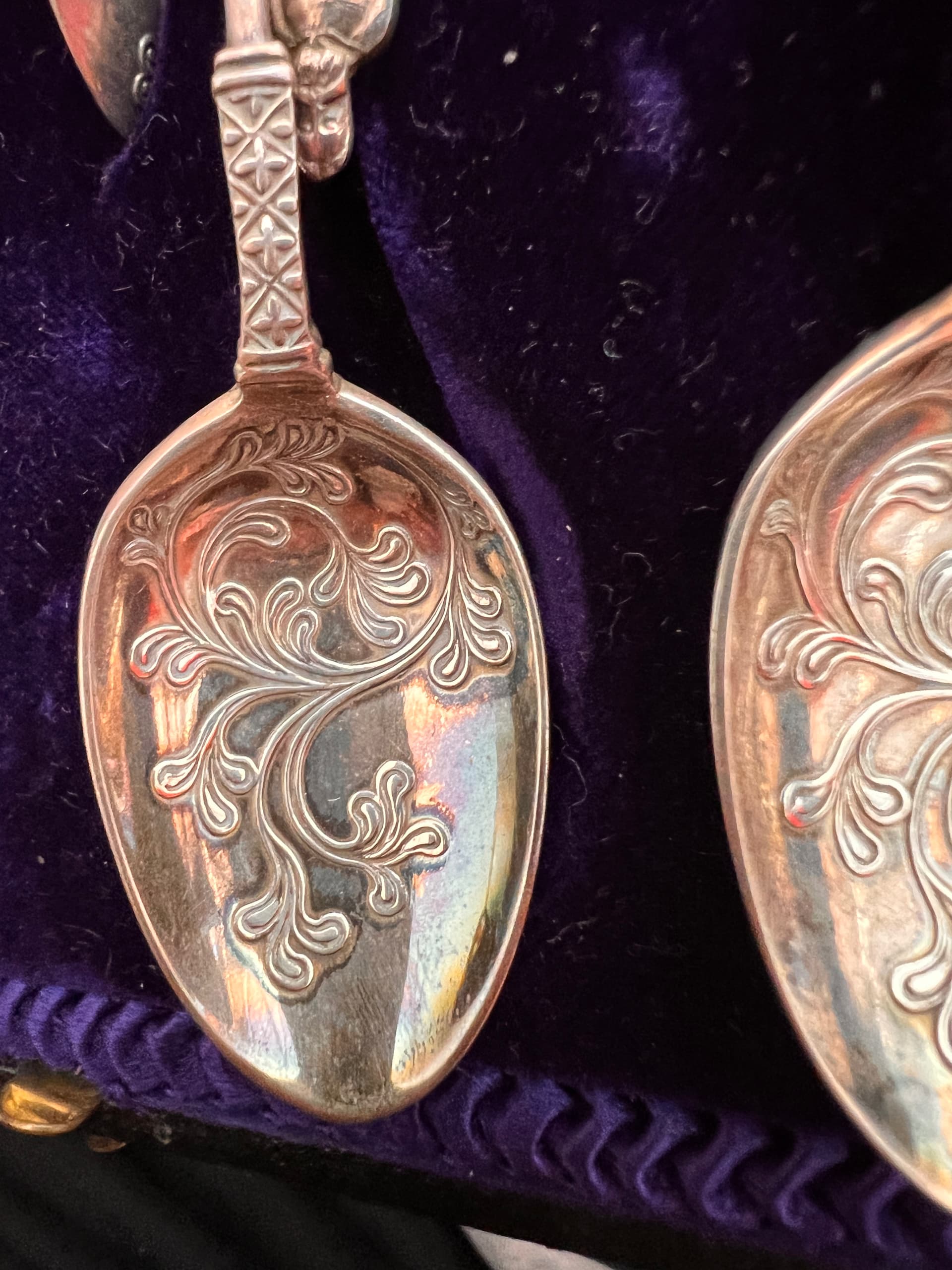 Boxed sets of 12 spoons with tongs are selling on Ebay for around £150.