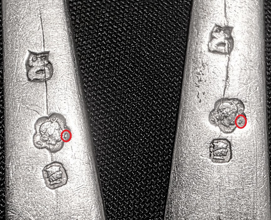 Thank you!! That is SO helpful!! Fascinating! I cannot make out the symbol on that right side with my magnifying glass but I have a loup coming in the mail tomorrow so I can try to read that. I will let you know if/when I can make out what it is. Thank you so much for helping identify those markings!