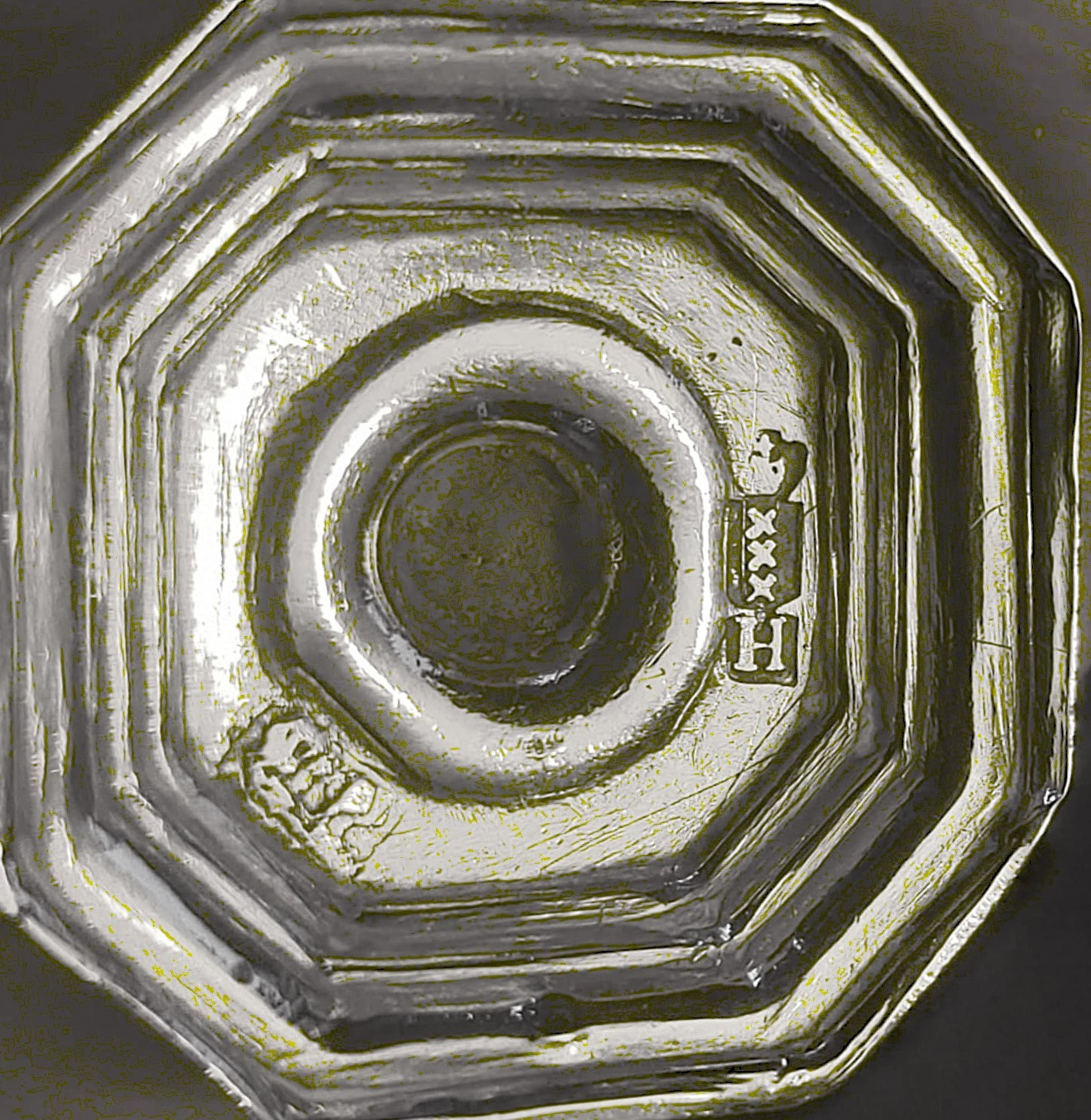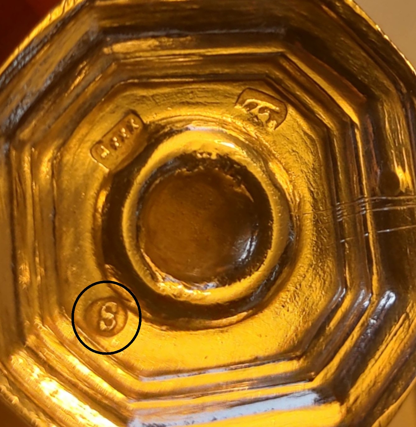 Three Saint Andrew’s Crosses in a vertical oval for the city of Amsterdam, assay office mark.