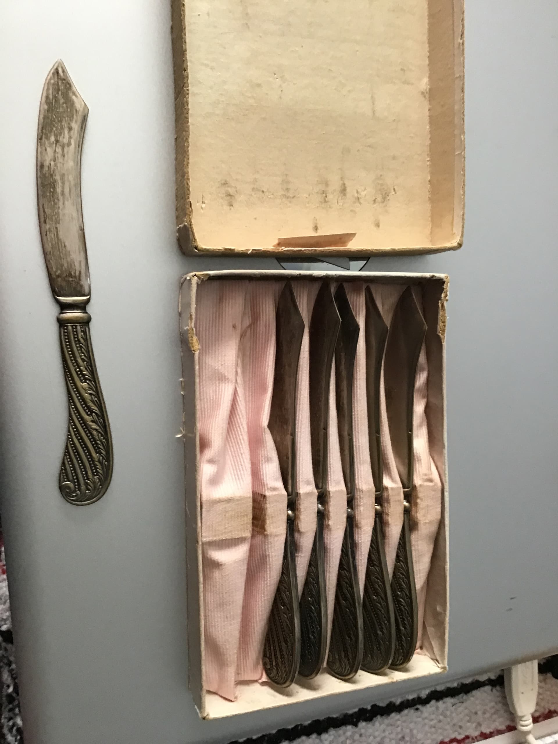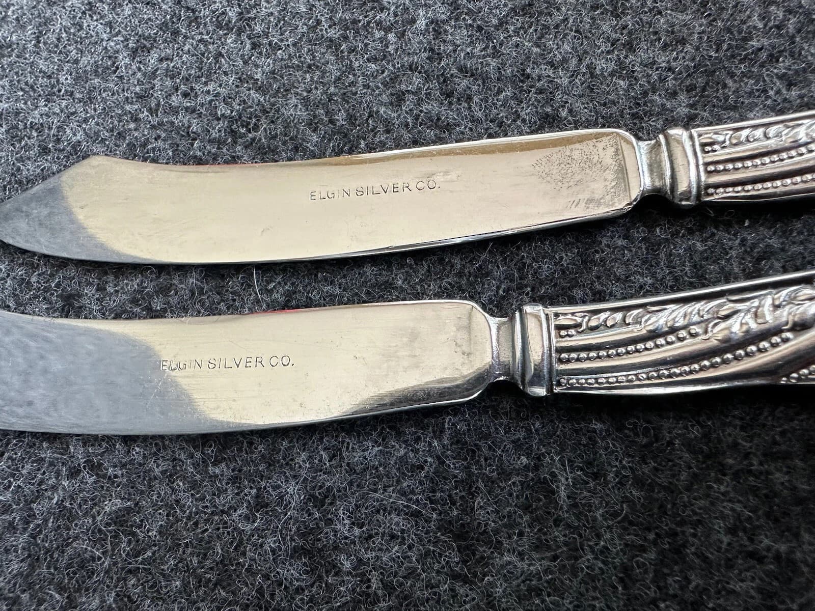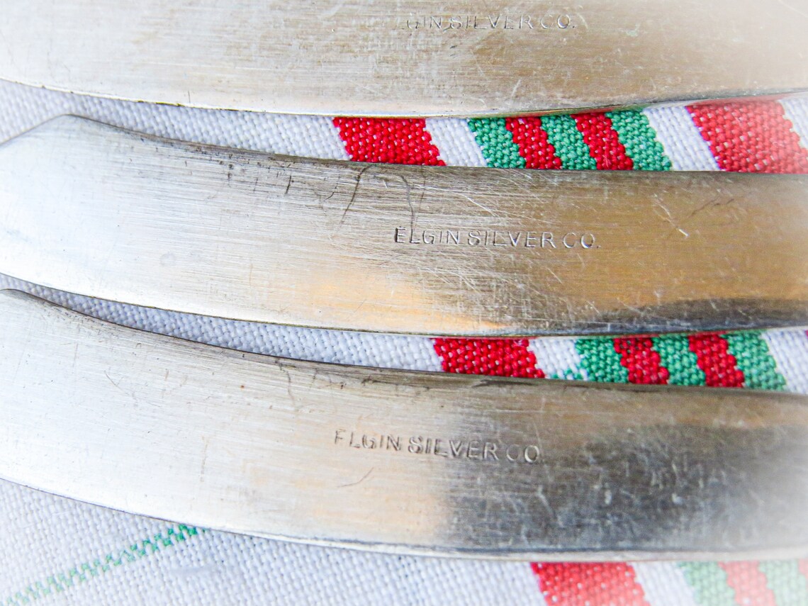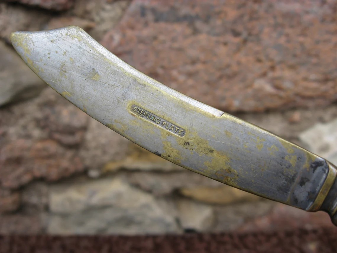 “Elgin Silver Company” on the second silver plated brass knife blade has the virtue of being slightly less misleading than the oxymoron " Sterling Plate" on the first!