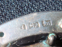 This mark appears on a pin which is a horseshoe with a foxhead. There are 7 gold insets in the pin as well.