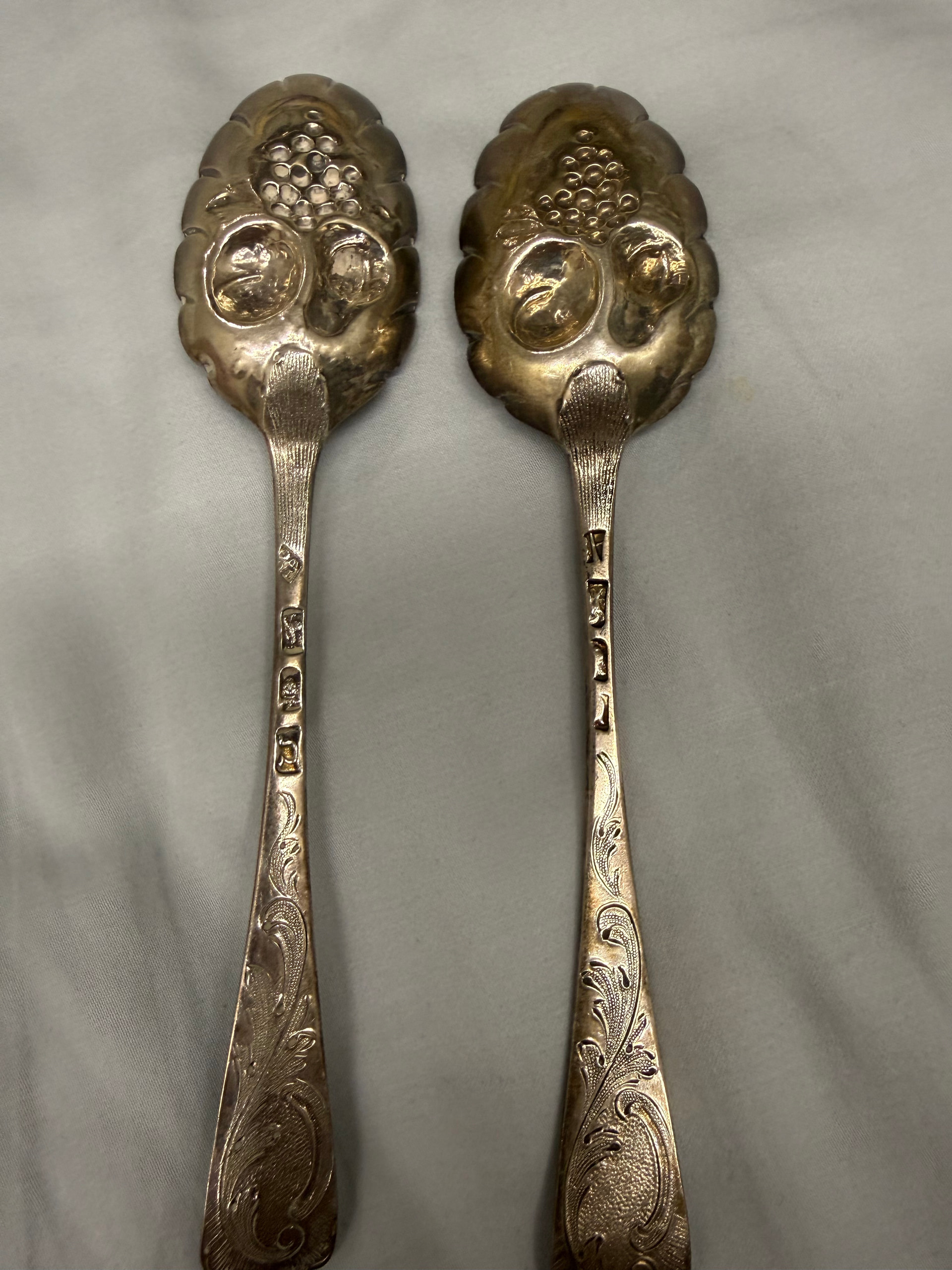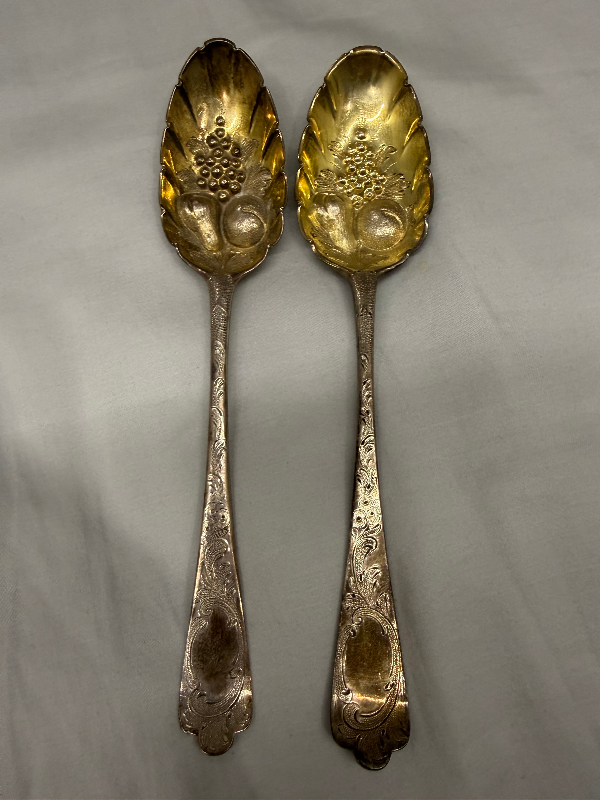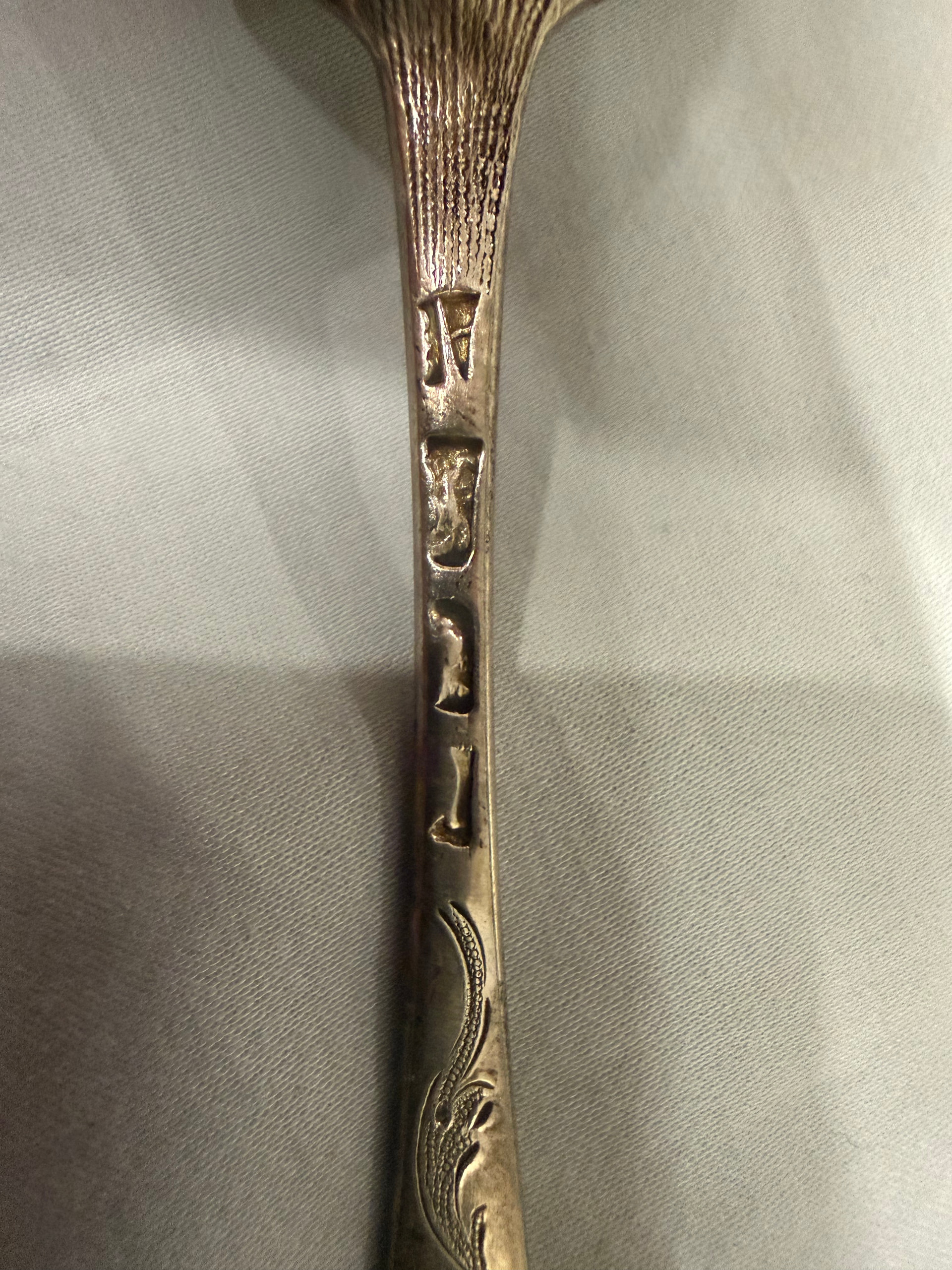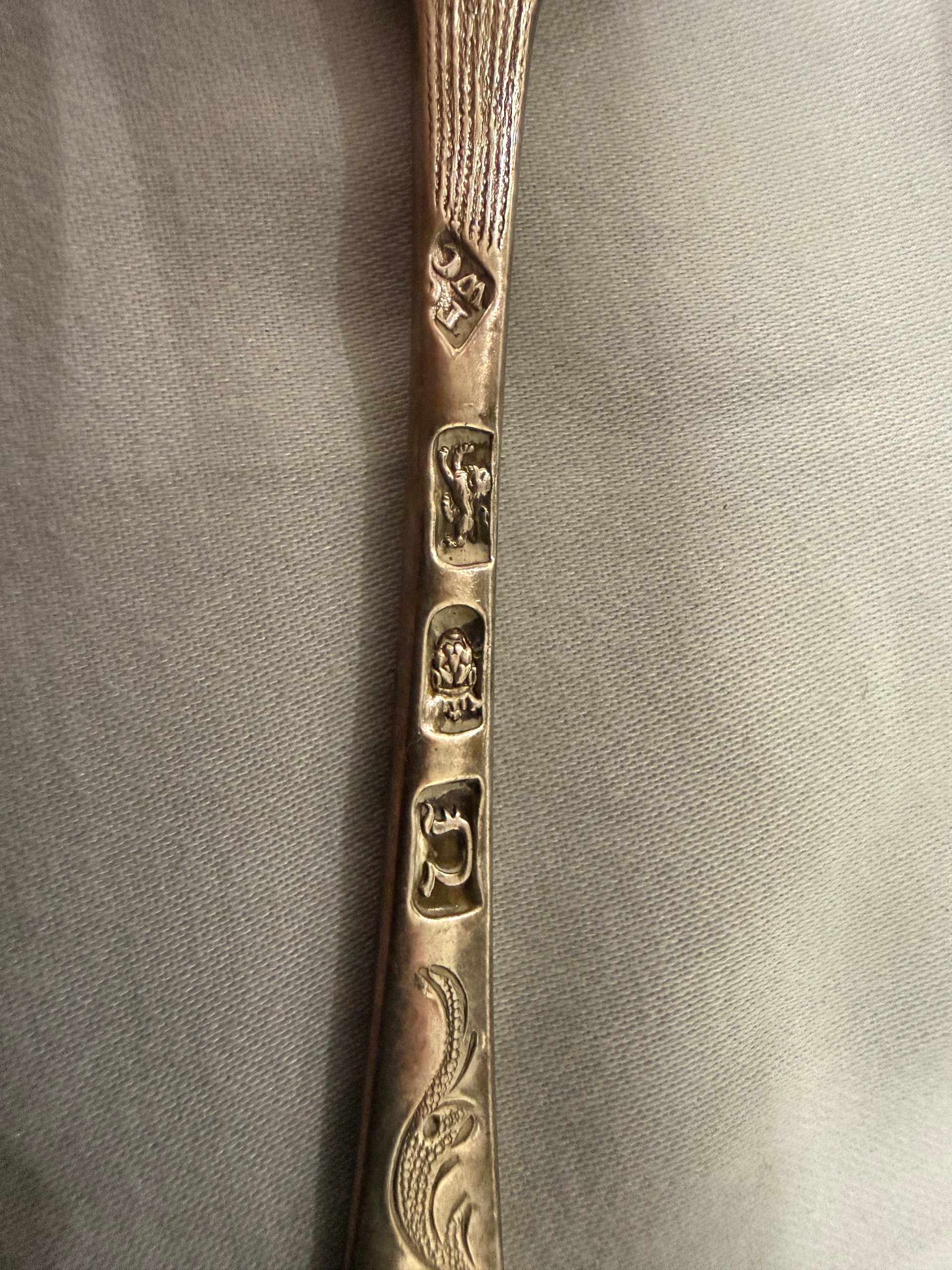 You should be aware that these spoons were originally plain with the decoration added later, probably by the Victorians who needed to make plain things look fancy.