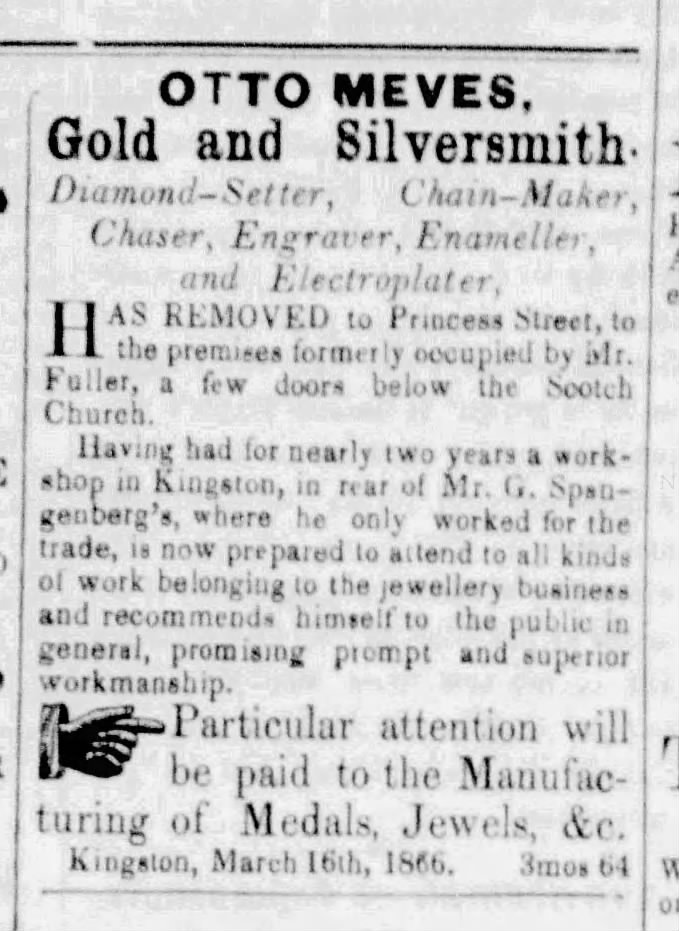 I’m looking for any information on otto meeves from, I believe montreal quebec in the eighteen sixties. I own a lovely, large silver pendant of a dove of peace that he made. But i’ve only been able to see flatware that he produced nothing like this.I would also like more information on the silversmith, if possible. This pendant is large, almost two and a quarter inches across.And weighs just under two ounces. Thank you in advance.
