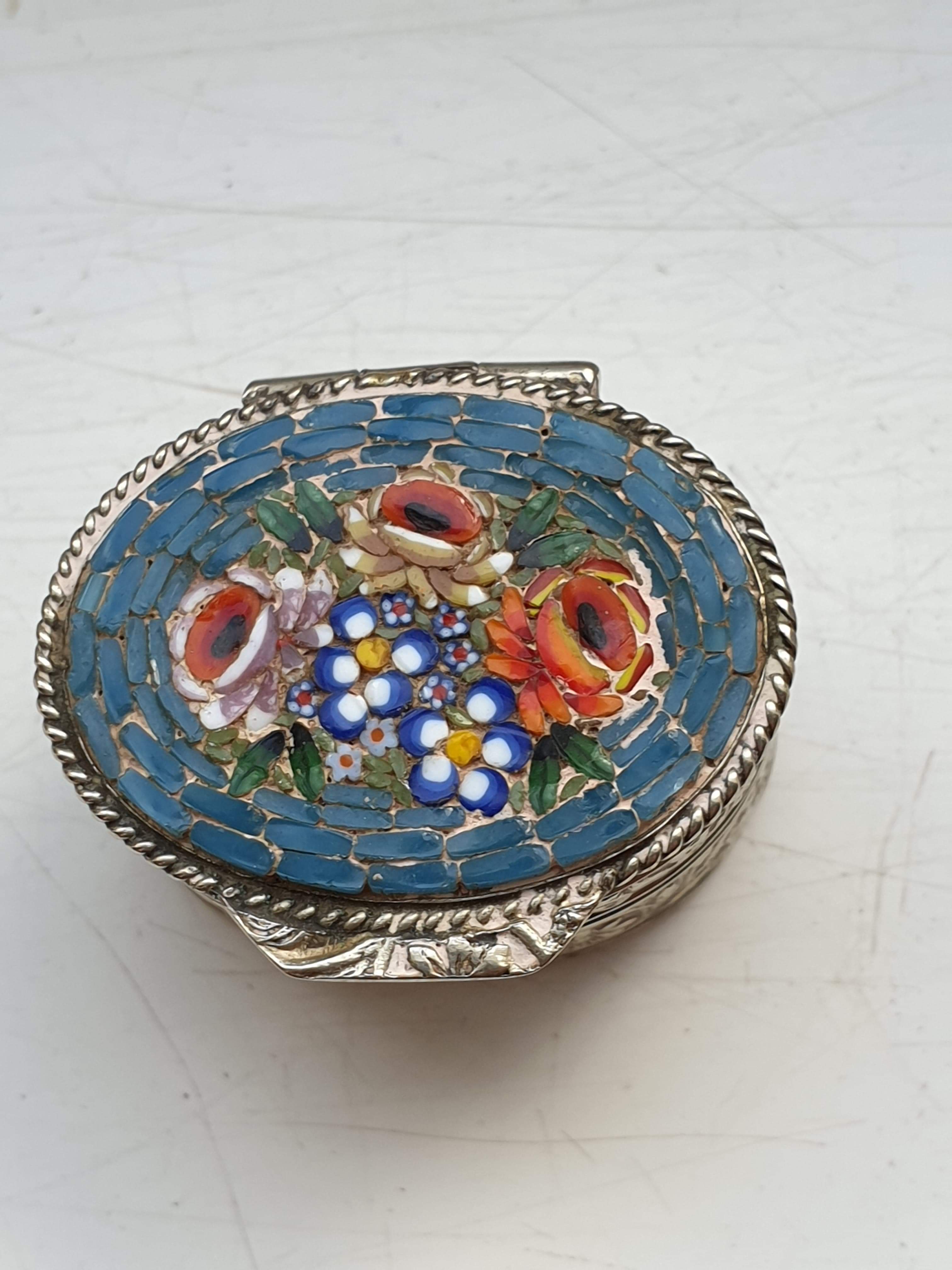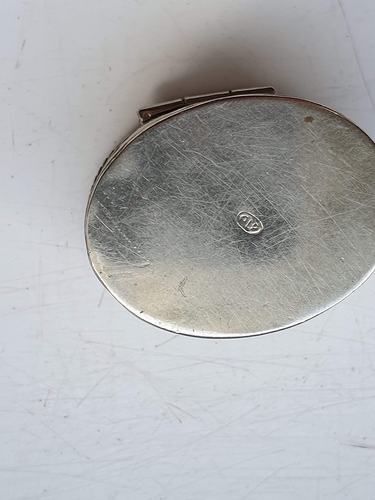 Got a lovely decorated pill box here, not sure of the makers mark on rear, will post pics both ways round, there a mar inside too… Or a scratch maybe… Thankyou?
