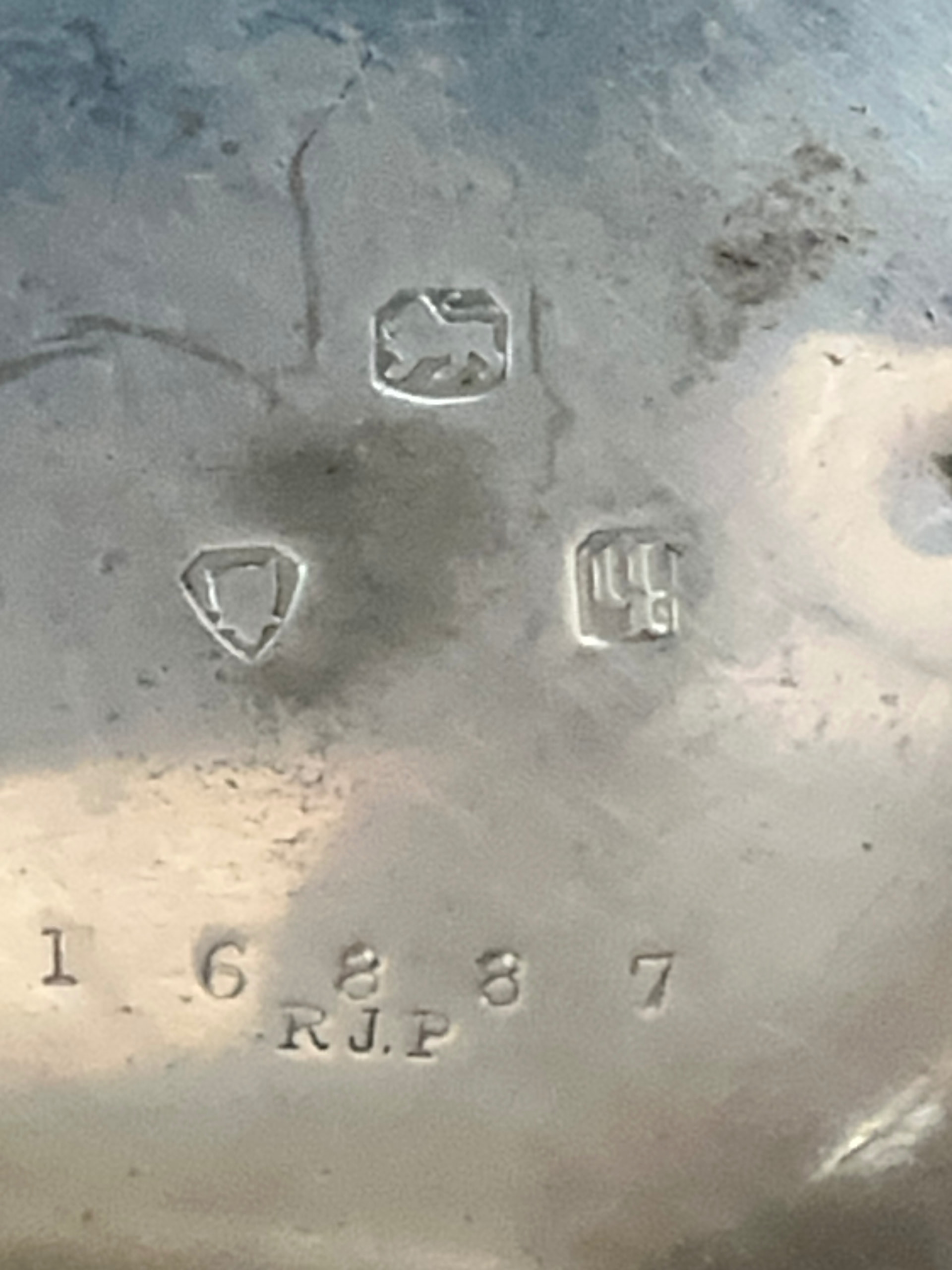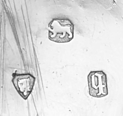 The other marks are the leopard mask for London Assay office and what appears to be a gothic lower case “h” which would indicates a date of assay for 1863. The standing lion(passant) is the sterling mark