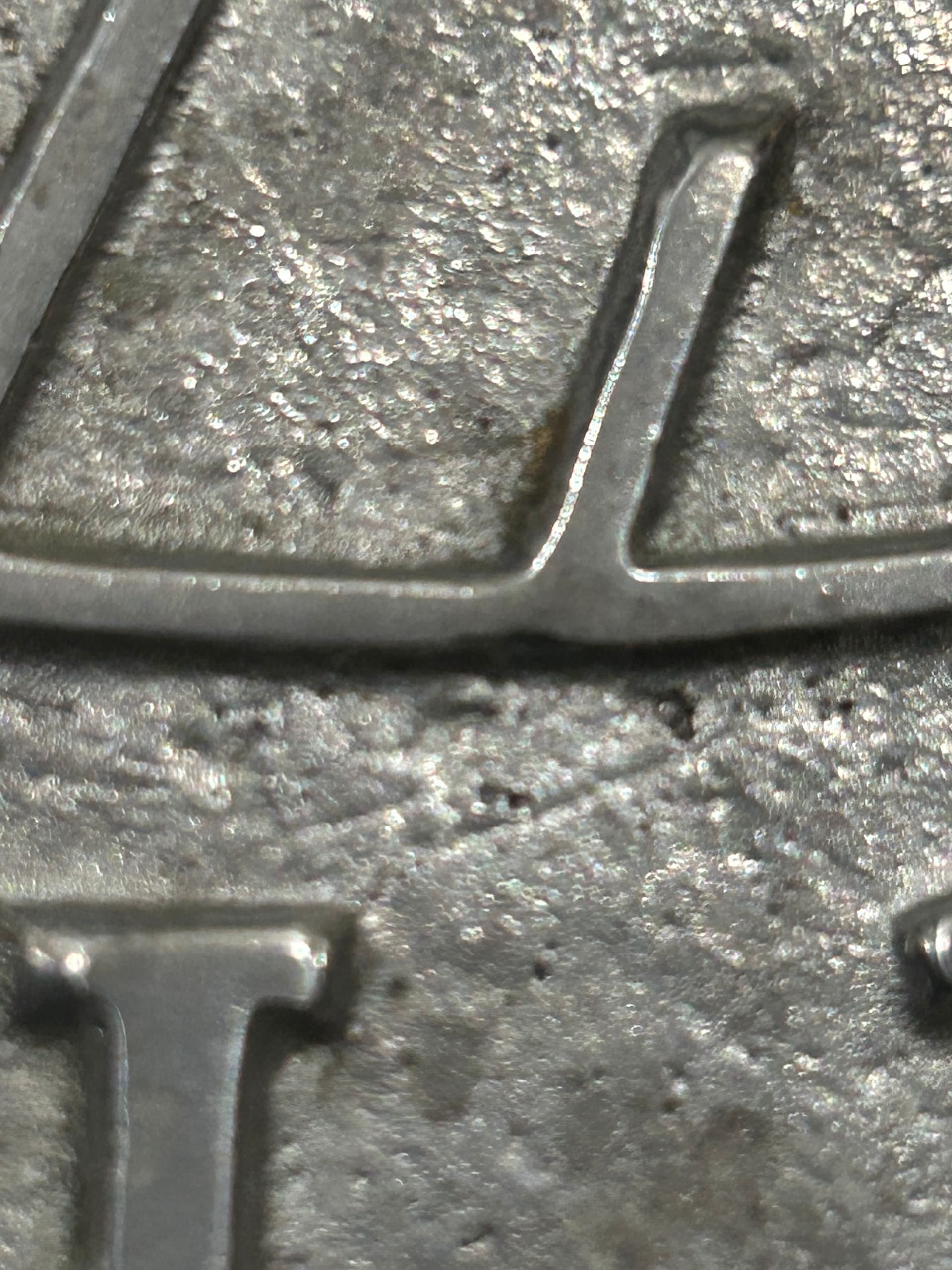 I will upload a picture of the back and some closer pictures of the black markings that are stained on it after I got rid of all the weird oxidized stuff on it that resembled a bronze color: which I thought it was when I bought it. But it was definitely not a coding. It was oxidization. It was just like falling off of it. Which is what made me want to start cleaning itšµāš« the ocd kicked in hard