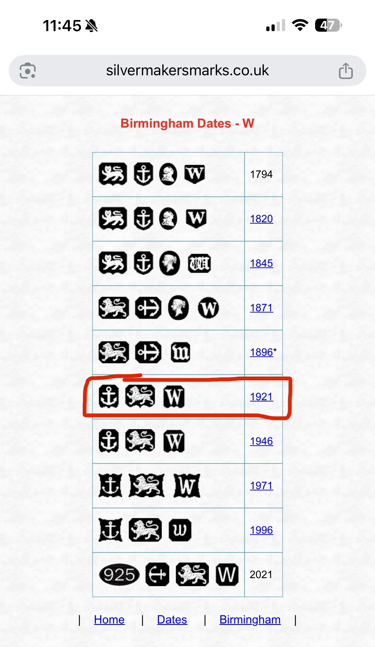 I’m really confused about this date mark on a Sweetheart Brooch. I thought these were made in Victorian times, but if I’ve read the date mark right, it’s 1921. Assayed in Birmingham, made by Joseph Richard Eaves. Please can you correct me if I’m wrong.